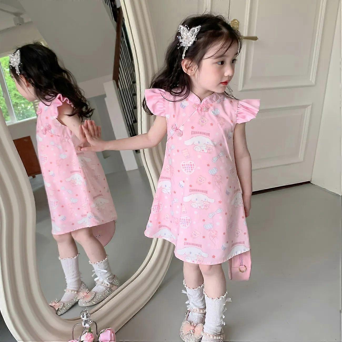 Anime Cinnamoroll Sanrios Kids Dress Girls Cheongsam Hanfu Flying Sleeve Dress Kids Tangsuit Children Party Outfits Kids Dress