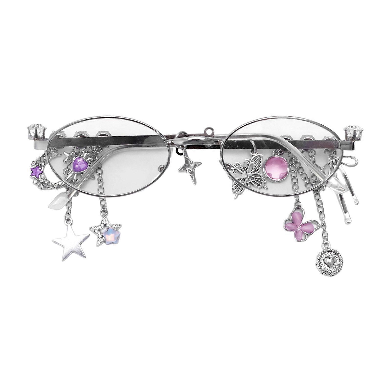 Cool Girl Elliptical Shape Sunglasses Popular Eyeglasses With Star Rhinestones For Women Music Festival Eyewears Multicolor
