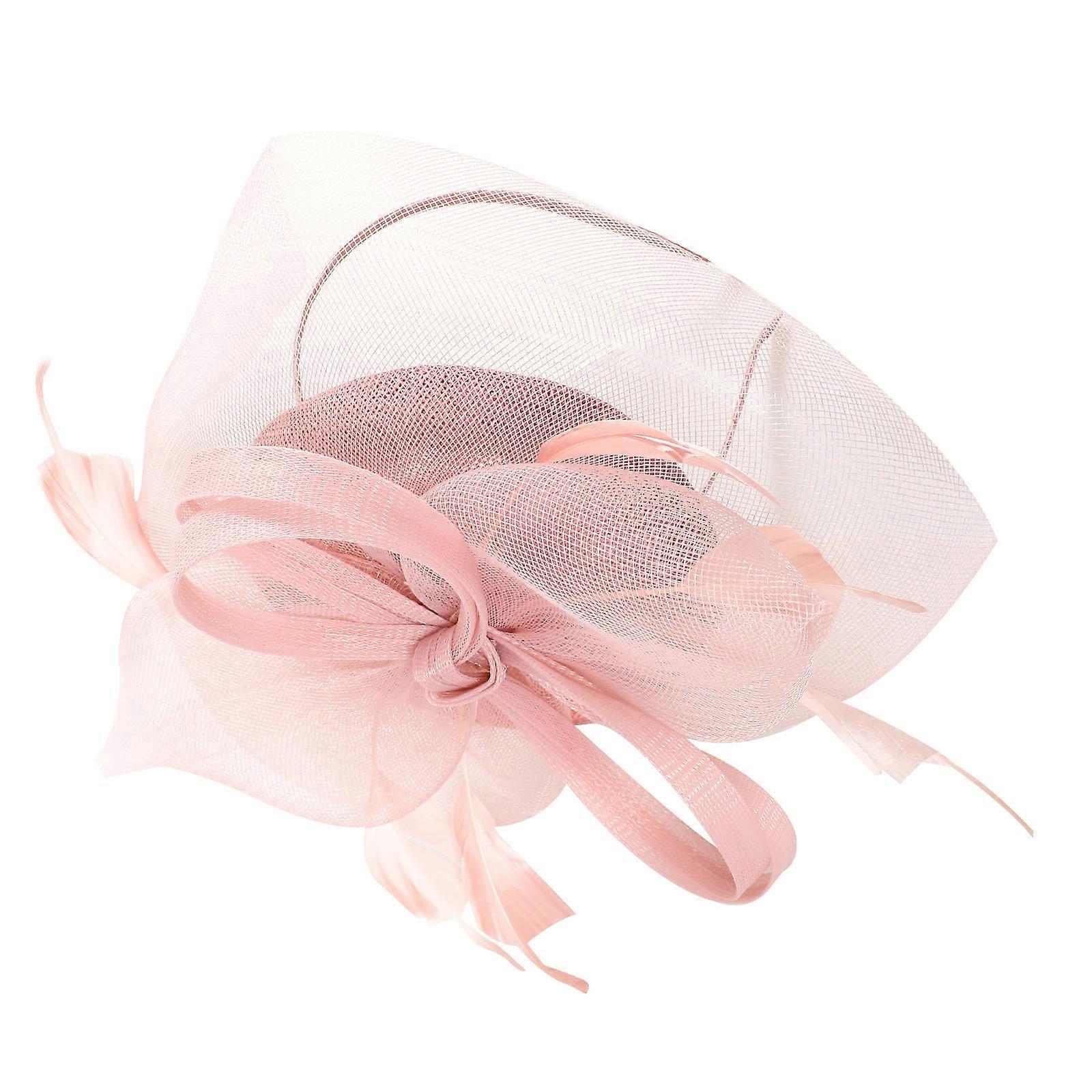 Pink Flower Fascinator Headband for Women Gauze Wedding Hat