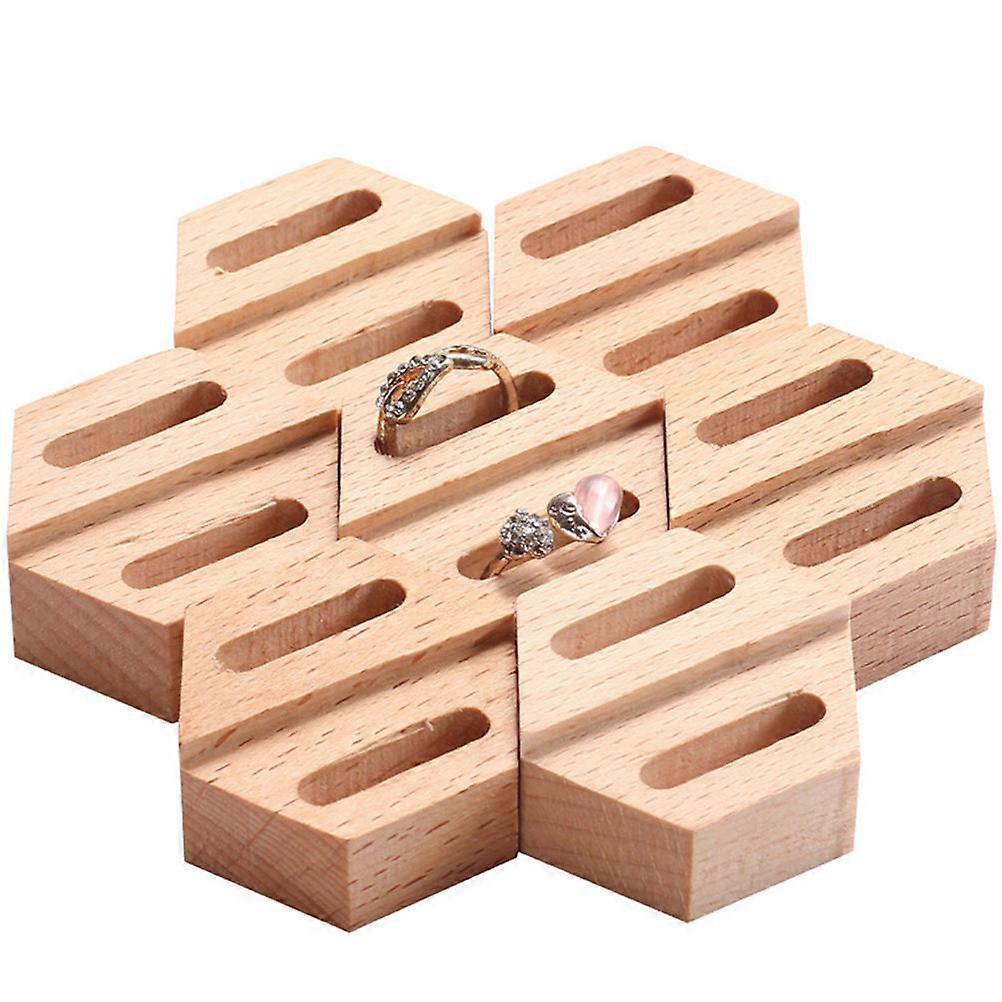 Wooden Ring Display Stand Beech Wood Jewelry Showcase Box Retail Store Safe Keeping 1Set