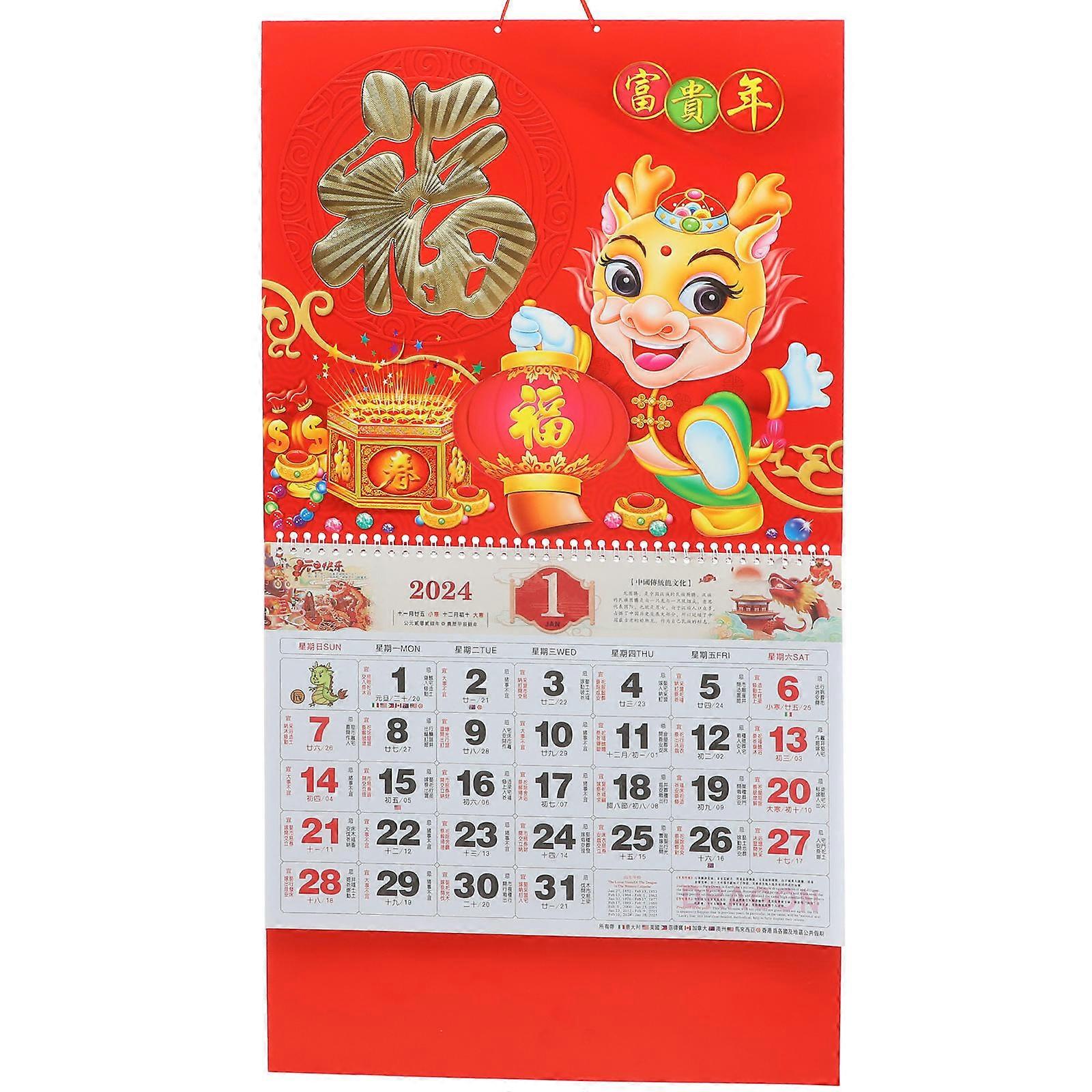 2024 New Year Calendar Featuring Dragon Design For Home Office Decoration In Multi Color With Dimensions 68X37X0.5CM For Date Checking 3Pcs