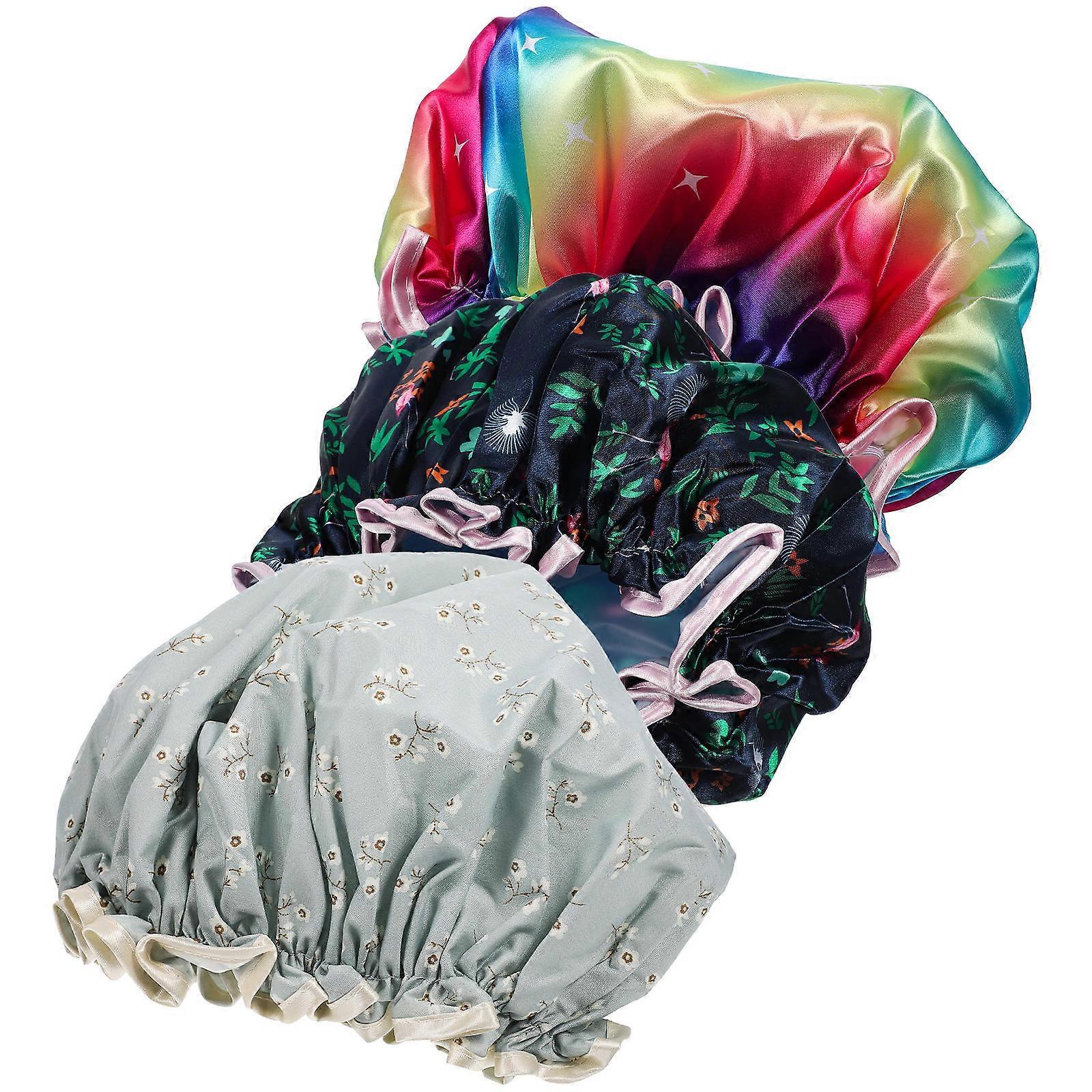 Women Shower Caps Double Satin Waterproof Bath Hat for Shower 12Pcs