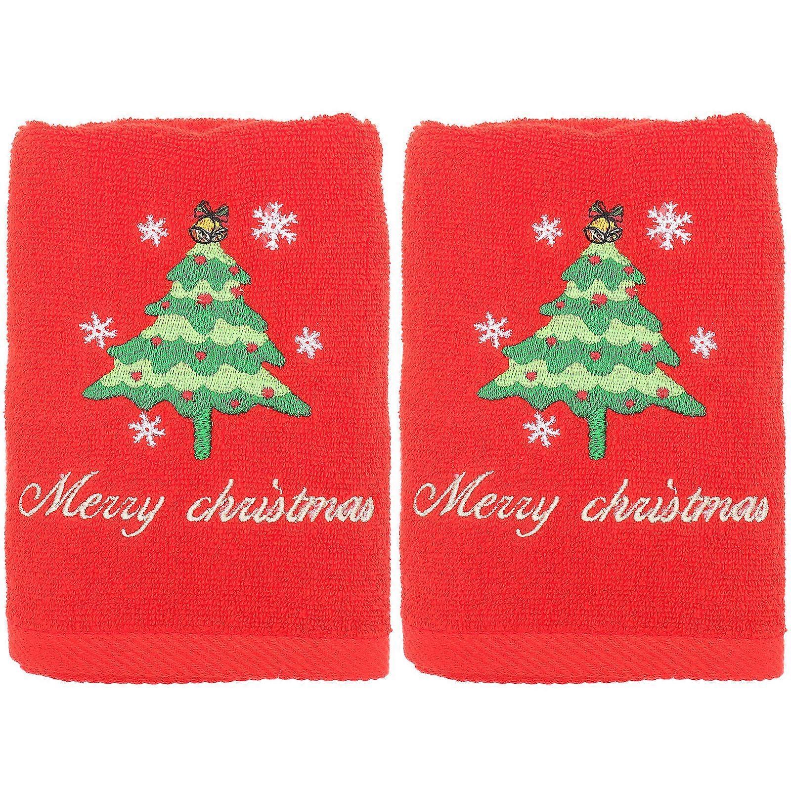 Christmas Embroidered Towels Cotton Hand Towels for Cleaning Use 2Pcs