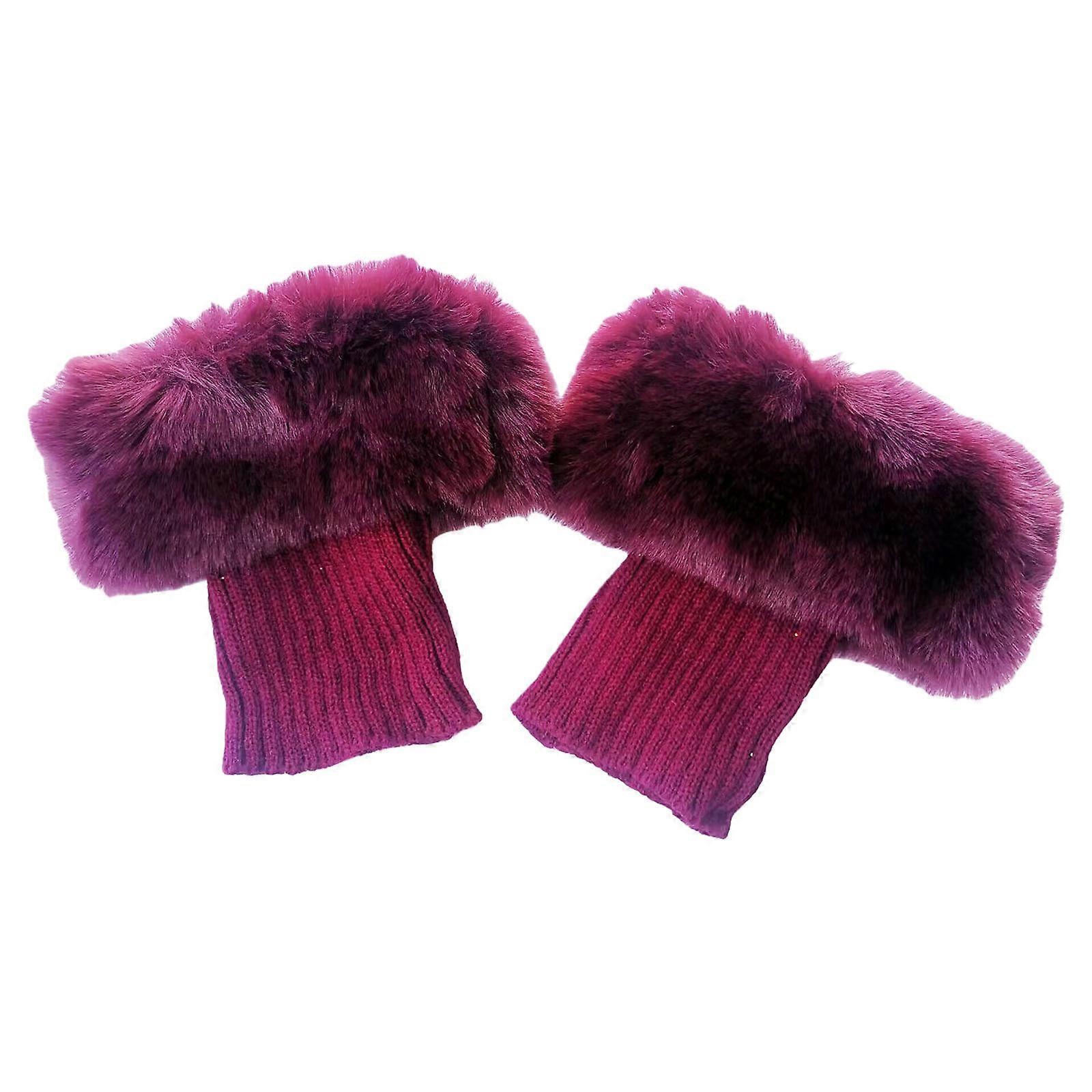 1Pair Winter Warm Boot Cuffs for Women Ribbed Knitted Furry Boot Toppers Socks Short Leg Warmers Leg Cuffs for Girl Burgundy
