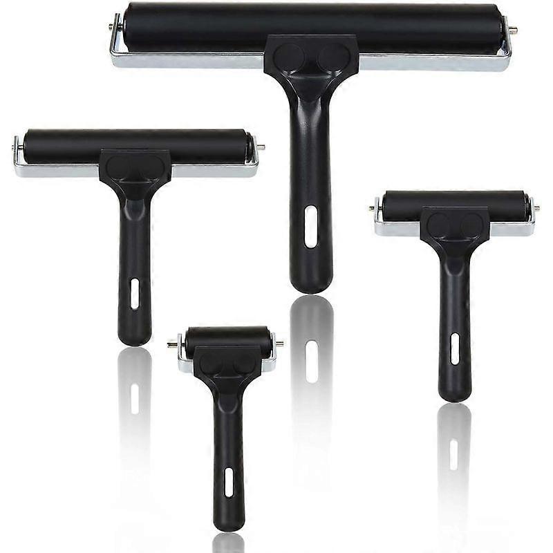 Luxora 4 Pack Rubber Brayer Roller - Vinyl Ink Printmaking Tool for Crafting, Painting & Stamping, Includes Various Sizes (2.4” to 7.9”)
