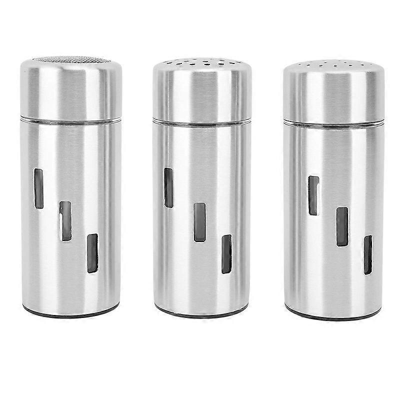 Luxora 3Pcs Salt and Pepper Shakers Set Stainless Steel 3 Sizes Hole Spice Dispenser Seasoning Container Bottle for Kitchen Outdoor