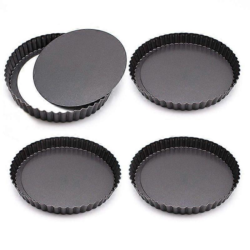 Luxora 4 Pack Tart Pan, Mini Non-Stick 4 inch Tart Tins Black Round Tart Quiche Pan Removable Bottom for Pie, Pizza