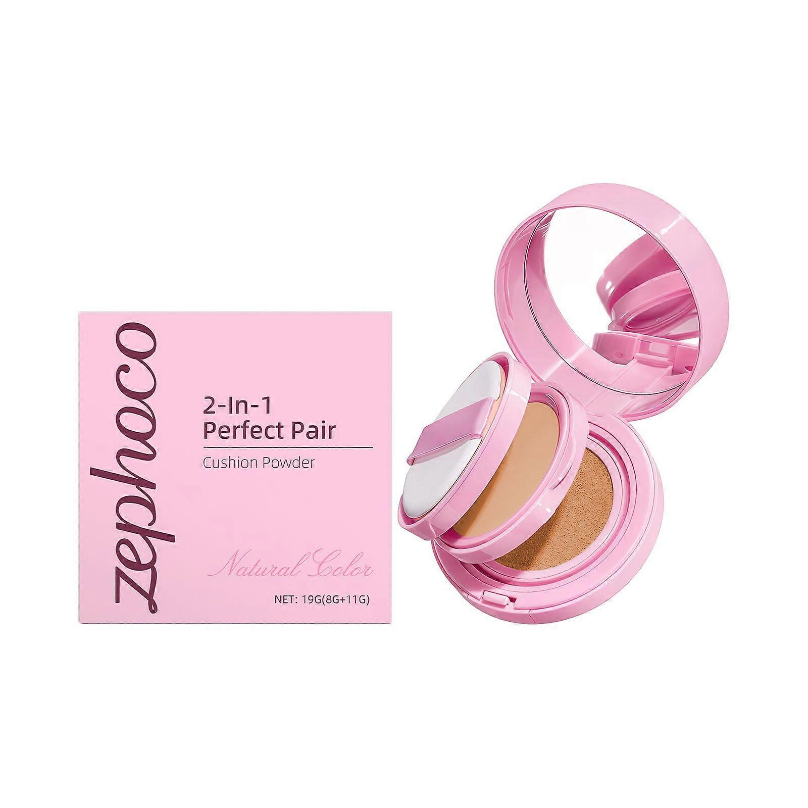 Zephoco Natural Color Two-In-One Air Cushion Powder Cake Clear Base Makeup Moisturizing Lightweight Daily Makeup