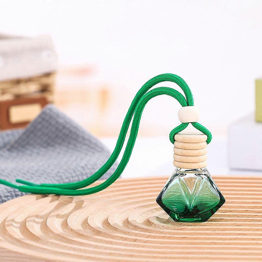 8ML Polygon Glass Perfume Bottles Air Freshener Diffuser Bottle Hanging Ornamen with Wood Lid for Car Rear View Mirror Decoration Green 200mm Capacity