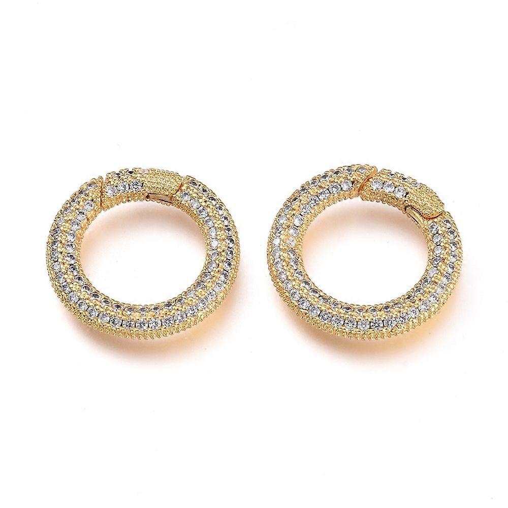 Brass Micro Pave Cubic Zirconia Spring Gate Rings O Rings Golden Clear 19.5x3mm Inner Diameter: 12.5mm