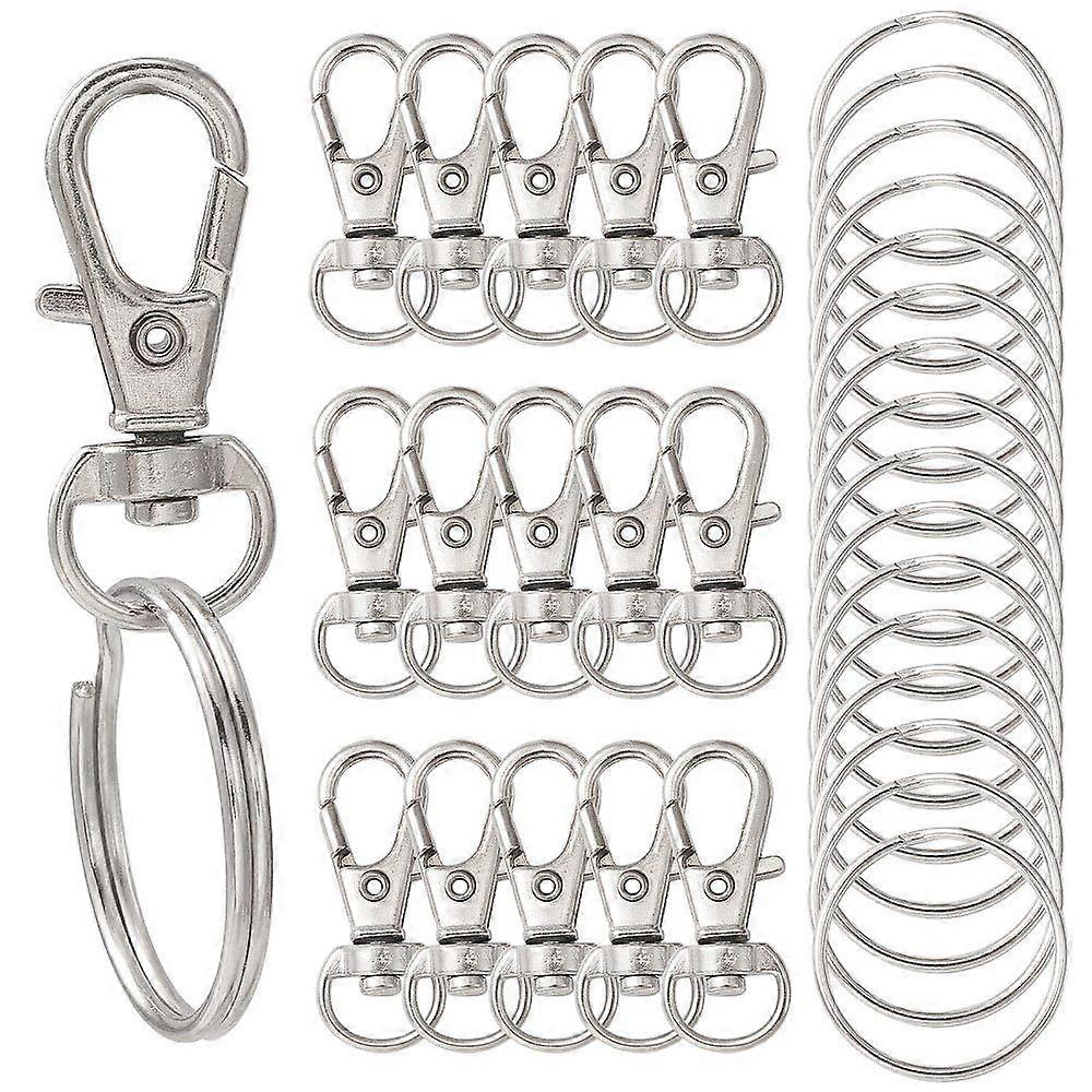 25pcs Alloy Swivel Lobster Claw Clasps Swivel Snap Hook with 25pcs Key Rings Platinum Lobster Claw Clasps: 30.5x11mm Hole: 5x10mm