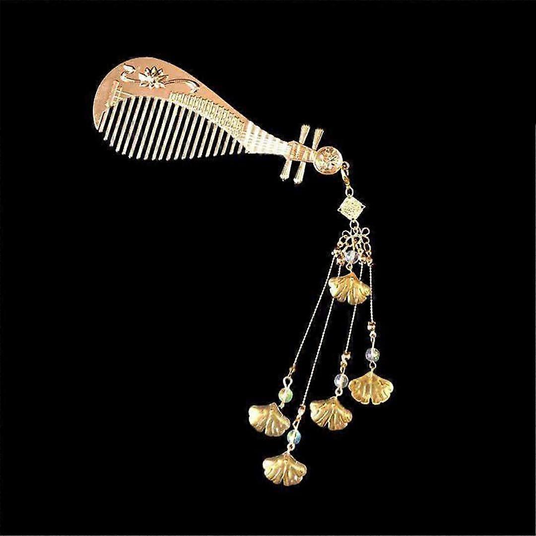 Vintage Chinese Wedding Hair Tiara Set with Tassel, Handcrafted Oriental Jewelry Comb Gold