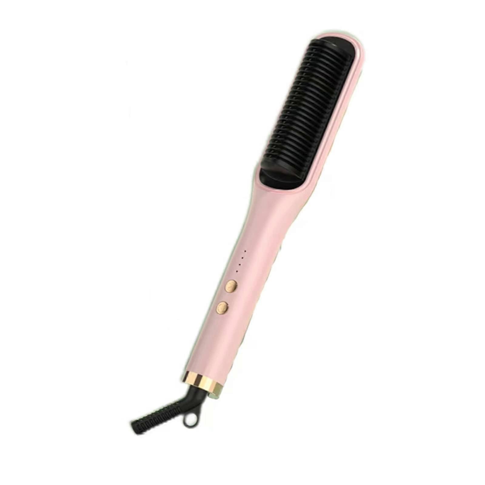 Product: Straight Hair Comb Color: Girl Pink Quick overview A compact, lightweight electric straightening comb that smooths frizz, reduces static, and styles hair fast. Negative ion technology, PTC constanttemperature heating, and 3D lengthened comb teeth deliver even heat and gentle styling for a smooth finish. Key benefits Fast heat and consistent temperature: Builtin PTC heater provides rapid heating and automatic temperature stabilization to reduce temperature swings during styling. Ready to use in about 20 seconds. Smooth, frizz results: Negative ion output and an even ceramiccoated heating surface help remove static and tame frizz for a sleek look. Gentle on hair during styling: 3D lengthened comb teeth and 3D antiscald design guide hair through the heating matrix for even contact and smoother combing with less pulling. Portable and easy to use: Compact dimensions and lightweight ABS construction make the device convenient for daily touchups and travel. Features 23 heating comb teeth for even heat distribution and efficient combing Ceramiccoated teeth that resist temperature and reduce hair breakage 3D comb matrix and threedimensional antiscald comb design for safer styling Plug and play operation with quick preheat and temperature stabilization Multilevel temperature control from 130 to 200 C to match different hair types Recommended temperature settings 130 C: fine, soft hair 150 C: permed or colored hair 180 C: coarse or thick hair 200 C: professional styling needs Specifications Name: straight hair comb Rated voltage: 220V Rated power: 45W Rated frequency: 50Hz Material: ABS Size: 4.5 x 27.5 cm Available colors: Mint green, Girl Pink, Knight black, Dark green, Magic purple, Bright moon white, Sky blue Temperature range: 130200 C Practical use scenarios Morning touchup: Smooth out frizz and restore a polished look in three minutes before work or school. Travel and onthego styling: Compact size fits luggage or a gym bag for quick restyling while traveling or after exercise. Quick refresh after washing: Run through dampdried hair to eliminate static and shape hair into a sleek style without lengthy tools. What to expect A durable, easytohandle styling comb that heats quickly, maintains a steady temperature, and helps achieve smoother, less static hair with fewer passes. Ideal for daily touchups, travel, and quick styling needs.