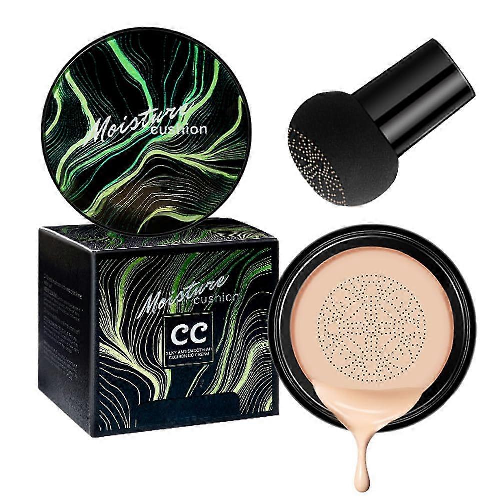 Air Cushion Foundation BB Cream with Mushroom Head Puff, Flawless LongLasting Coverage, #02 Natural 0.53oz