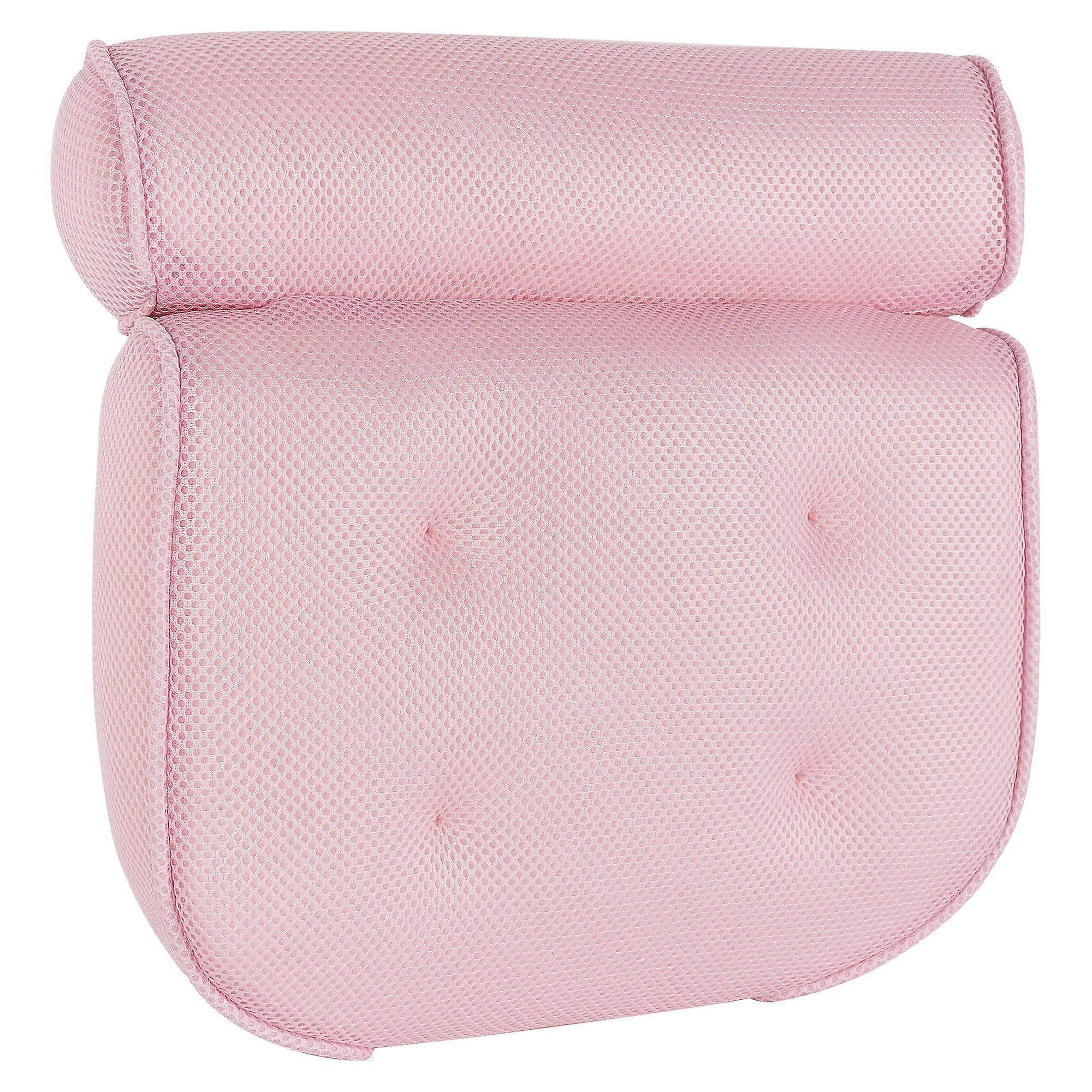Pink Bath Pillow with Six Suction Cups, Ergonomic Spa Bathtub Cushion for Neck and Head Support