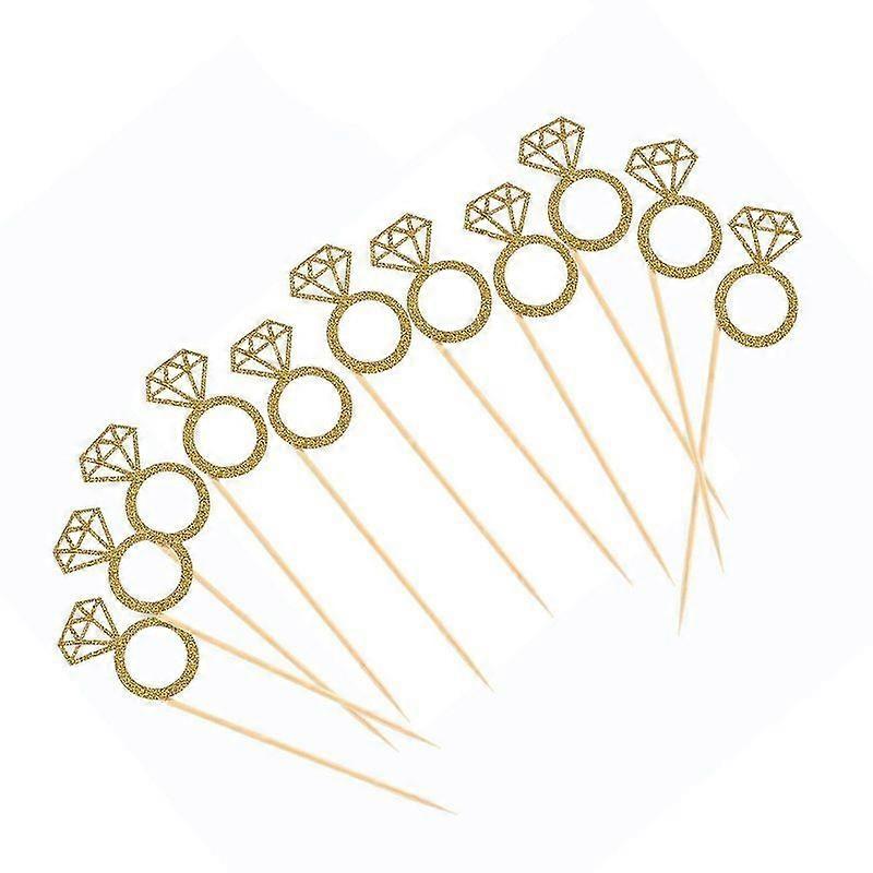 Luxora 50 Pack Cupcake Toppers Gold Glitter Mini Diamond Ring Cakes Topp