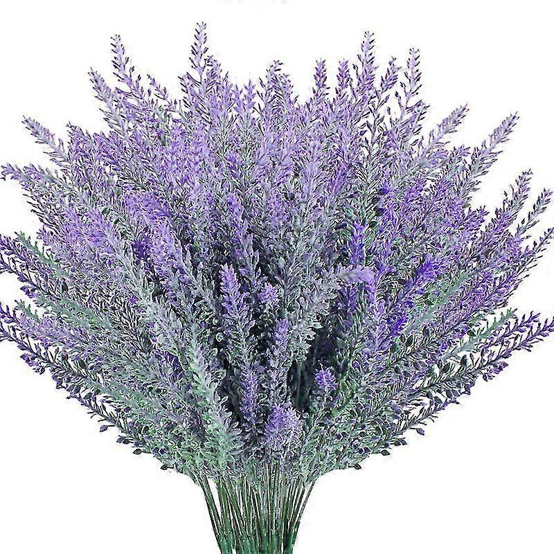 Luxora 4pcs Artificial Flowers Flocked Plastic Lavender Bundle Fake Plants Wedding Bridle Bouquet Indoor Outdoor Home
