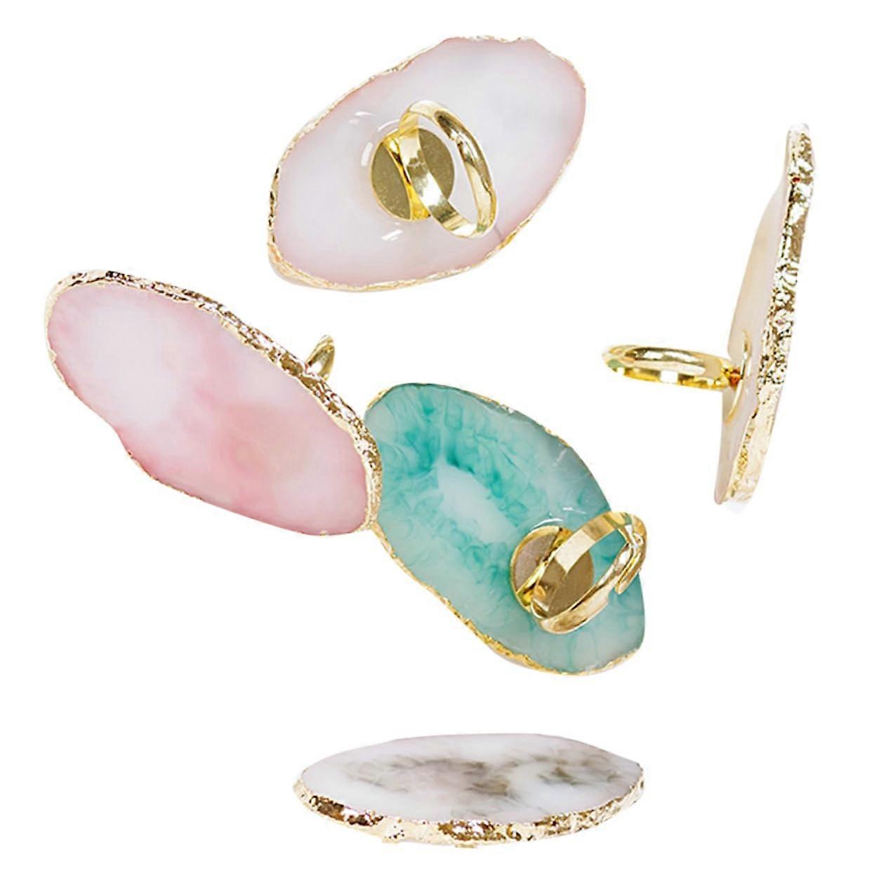 Nail Art Palette Ring Set, 5pcs Resin Mixing Boards with Gold Edge, Easy Color Mixing, Green