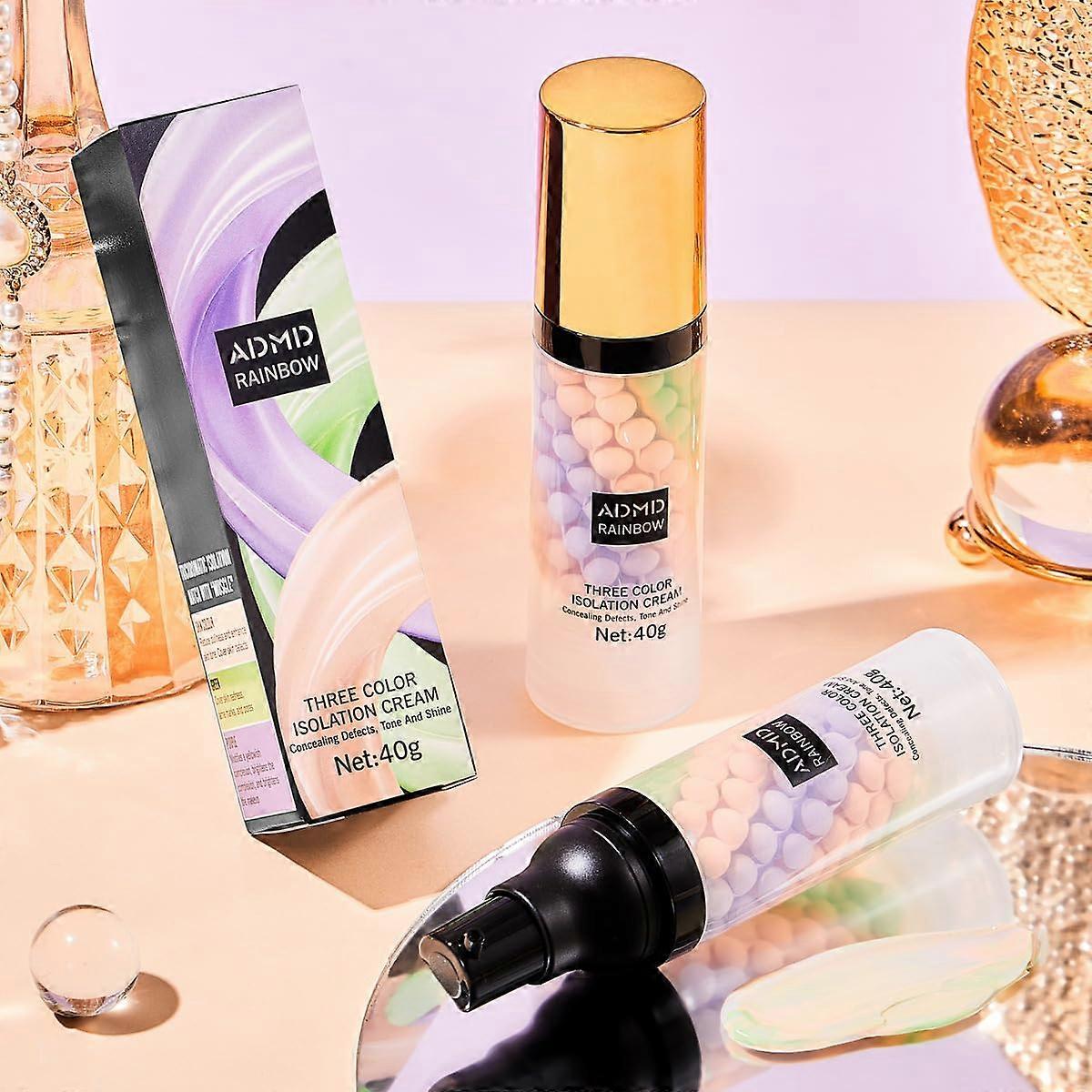 TriColor Rotational Isolation Cream Brightening Oil Control Moisture Clear Concealer Primer Overview A multifunctional cream designed to combine concealer, primer, brightening treatment, highlighter, and setting product in one compact. The tricolor rotational format allows color correction and customized coverage, while a lightweight, creamy texture blends easily for a natural finish. Key benefits Full coverage for dark circles, blemishes, and uneven skin tone without feeling heavy Brightens the undereye area and other targeted zones for a refreshed appearance Controls excess oil and shine while delivering lightweight hydration Longlasting wear, up to 12 hours, with minimal creasing or settling into fine lines Universal shade and blendable formula suitable for a wide range of skin tones Compact, tricolor rotational design for precise, application Features and attributes Functions: concealer, primer, brightener, highlighter, and setting product in one Texture: creamy, lightweight, and easy to blend for buildable coverage Wear: longlasting performance that maintains coverage and reduces shine throughout the day Application format: tricolor rotational compact for mixing tones and targeted correction Use: suitable for use alone or as a base under makeup Practical use scenarios Daily makeup base: Apply a thin layer across the Tzone and under the eyes before foundation to control oil and extend wear time. Targeted correction: Rotate to the desired shade and blend over dark circles, age spots, or small blemishes for precise, full coverage. Onthego brightening and touchups: Keep in your bag for quick undereye brightening or to reduce shine during the day. How to use Rotate the compact to choose the desired color or combination. Apply a small amount with a fingertip, brush, or sponge. Blend outward until seamless. Use alone for a natural look or layer under foundation for added longevity. Who this is for People seeking a single product that simplifies a routine by combining correction, priming, brightening, and light setting, especially those who want oil control, hydration, and a longwearing, creaseresistant finish.