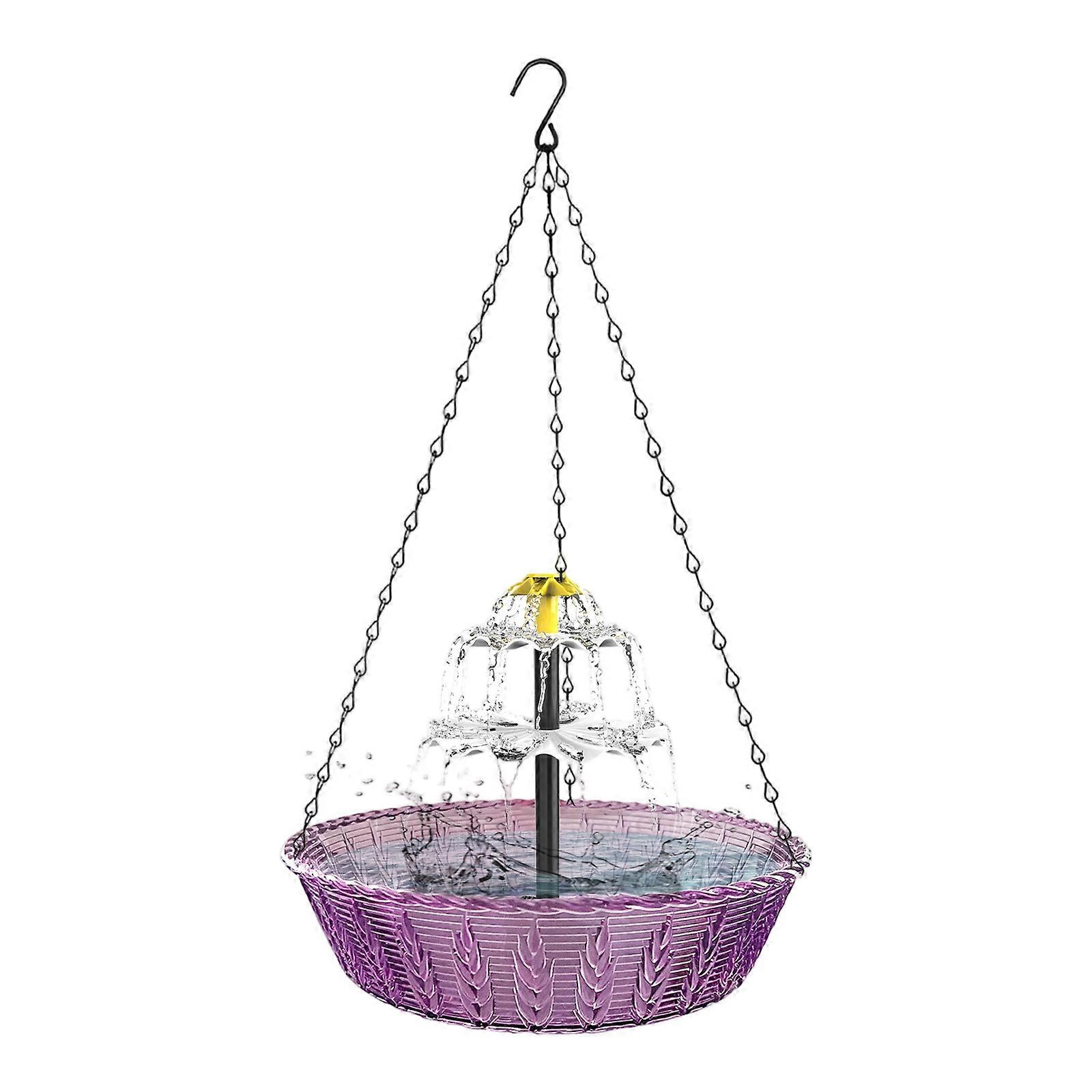 Features: This solar operated hanging bird bath features a water fountain with multi directional sprayed jets, creating an enchanting, interlaced water curtain that enhances your garden with soothing visual and auditory effects for relaxation. Crafted from rust resistant plastic, the easy install design incorporates a reinforced hook for secure attachment to various surfaces, ensuring reliably performances and weather resistantlongevity in outdoor environments. Ideal for bird enthusiasts and gardeners, this fountain bird bath attracts diverse avian species while enriching outdoor spaces with a decorative water feature that promotes wildlife interaction. Perfect for gardens, patios, and backyards, this solar bird bath for birds to bathe and drink, adding natural beauties to your landscape decor. Enjoy a harmonious outdoor experience with this multifunctional solar bird bath, designed to accommodate different bird behaviors efficiently without requiring external power sources. Specifications: Component:Plastic Size:Approx.42x24x6.5cm/16.54x9.45x2.56inch Usage scenario: courtyard garden | balcony hanging | outdoor landscape<br/>Precautions: Avoid strong impacts | Clean accumulated water regularly Package Includes: 1pcs Hanging Fountain Bird Bath 1pcs Chain note: 1.Please allow 1-2cm errors due to manual measurement, make sure that you donot mind befores you order. 2.Due to the differences between different monitors, the picture may not reflect the actual color. Thanks for your understandings.