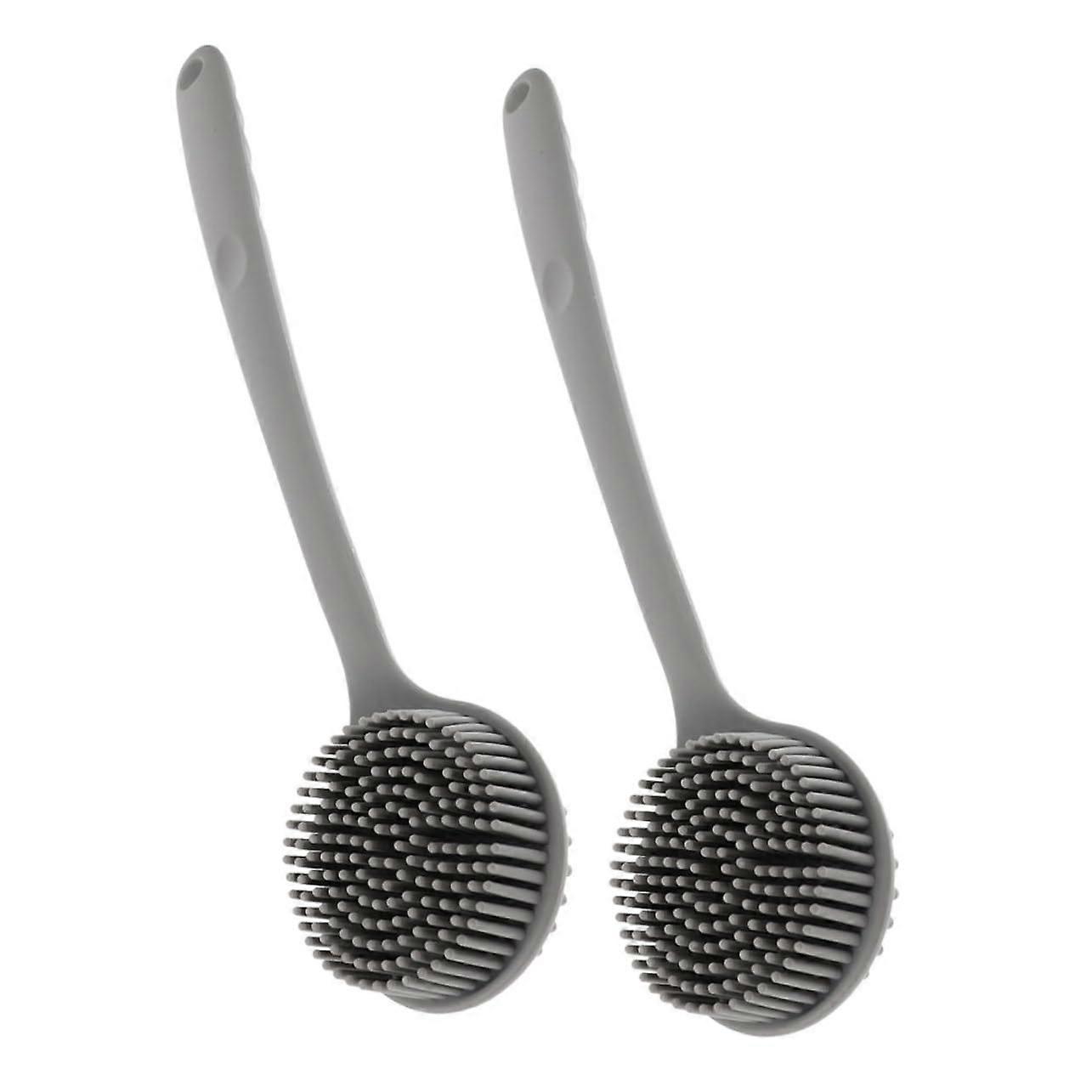 2Pcs Silicone Bath Brush with Long Handle Back Scrubber for Shower Gentle Exfoliation Light Grey