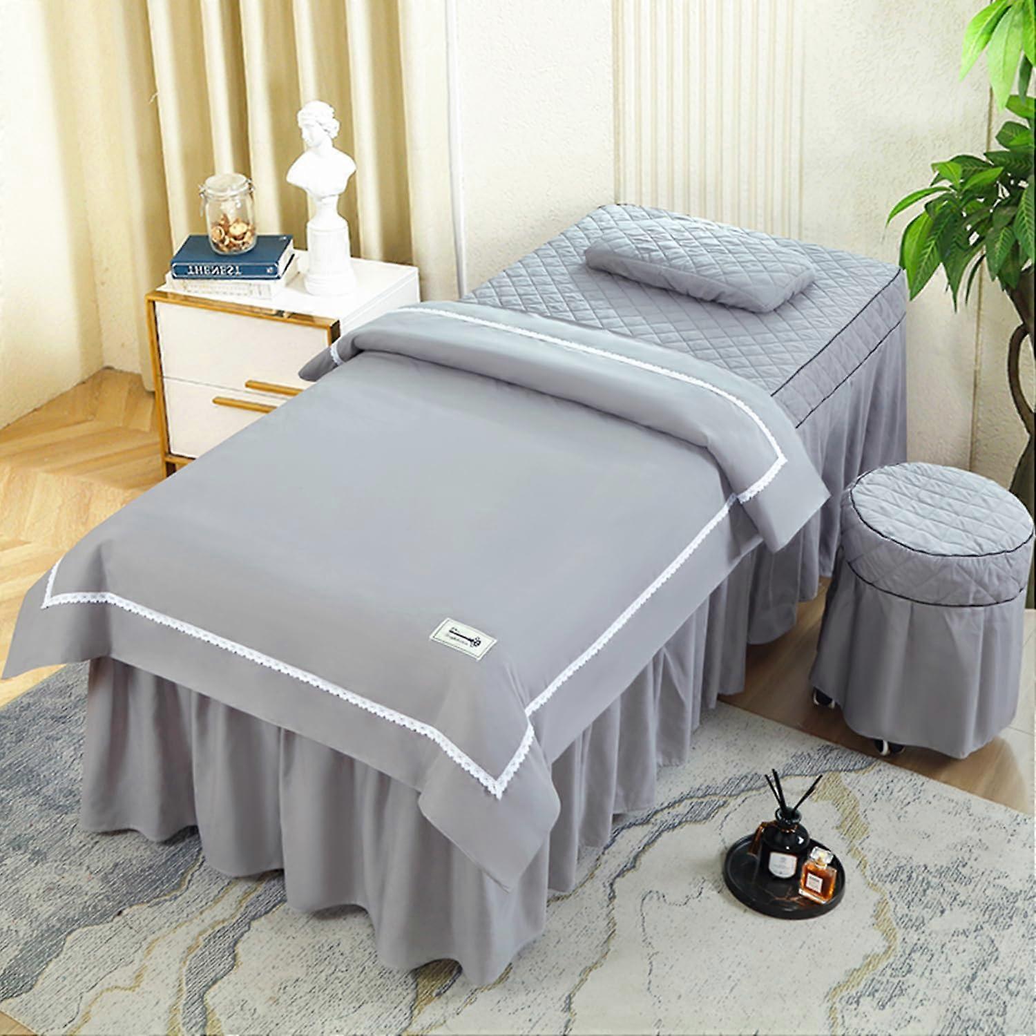 Massage Table Cover Spa Bed Skirt Set 80x190cm Gray Quilted with Face Hole Washable Full Coverage