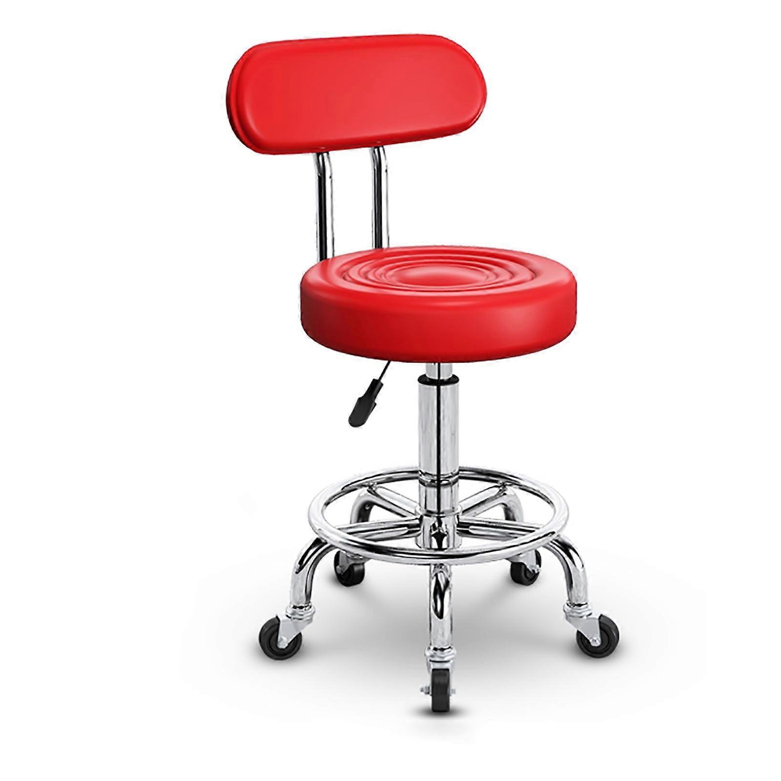 Height Adjustable Salon Stool with Backrest, PU Leather Swivel Beauty Chair with Wheels, Red