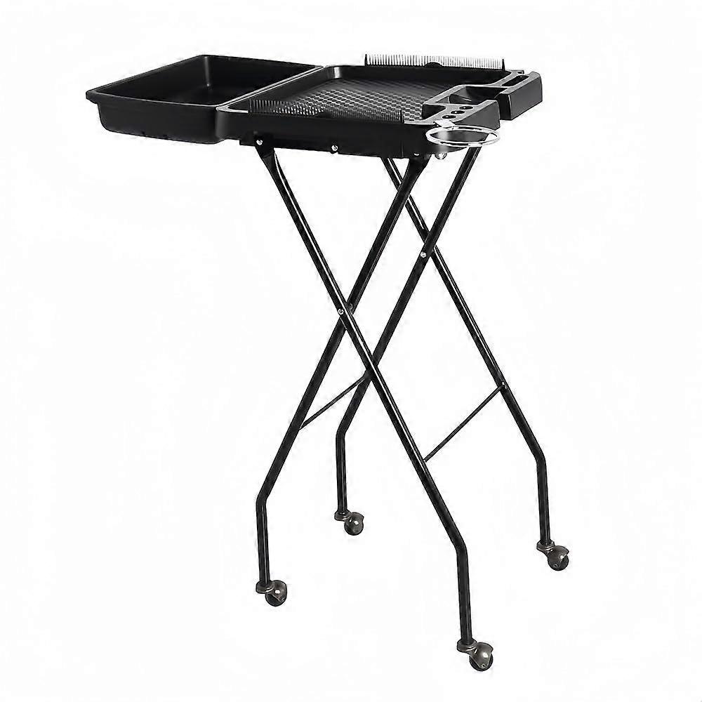 Salon Tray with Wheels and HeatResistant Hair Dryer Holder, Foldable Trolley for Barber Shops