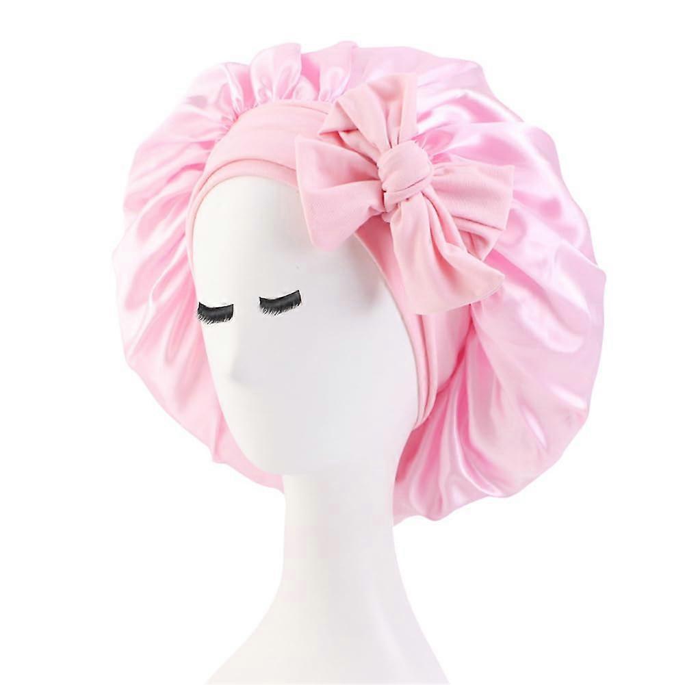Satin Sleep Cap with Adjustable Tie AntiSlip Wide Band for Curly Long Hair Overnight Protection Pink