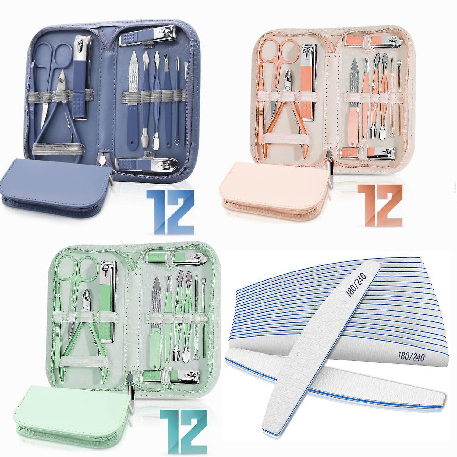 12 Piece Manicure Pedicure Set with Case, Rose Gold Travel Nail Care Kit, Stainless Steel Tools
