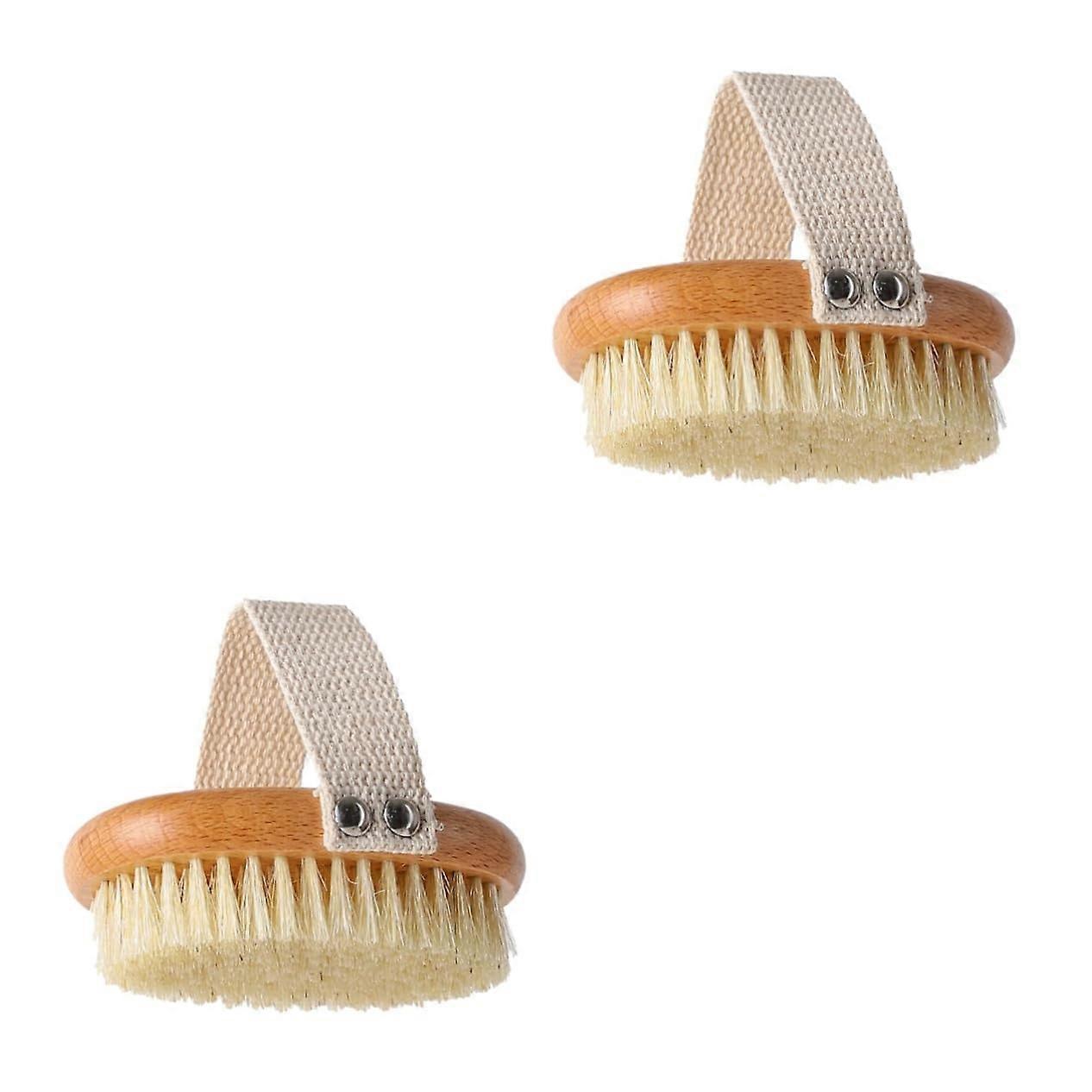 Dry Body Brush Set of 2 Natural Bristles for Gentle Exfoliation and Long Handle Back Scrubber