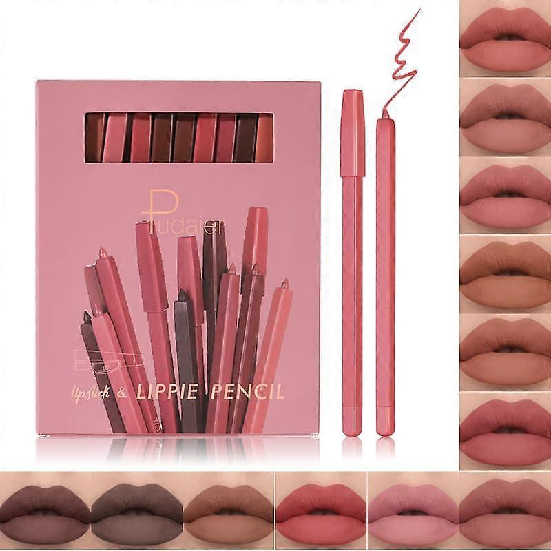 12 Colors Waterproof Matte Lip Liner Pencil Set with Sharpener, Long Lasting Silky Smooth