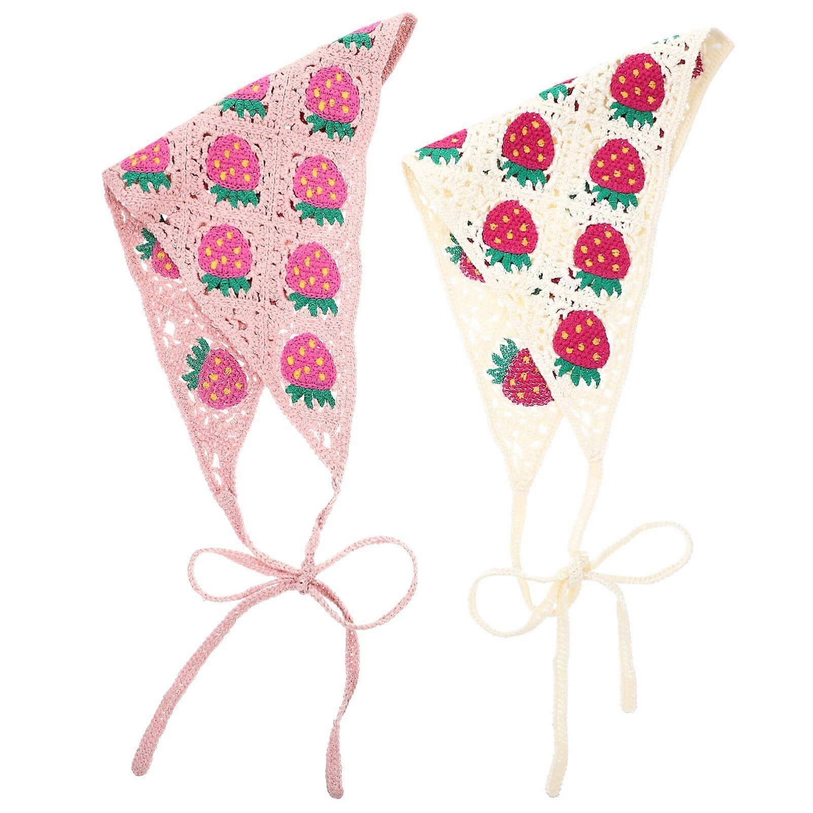 Crochet Headband and Hair Scarf for Women with Strawberry Pattern, Adjustable Tieback, 2pcs Set