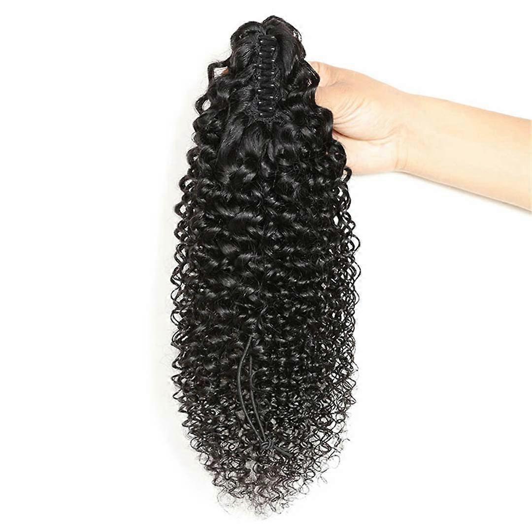 10 Inch Kinky Curly Human Hair Ponytail Extension Natural Color Clip On Brazilian Hairpiece