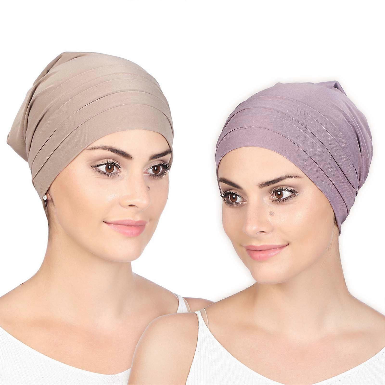 Chemo Cap for Women 2 Pack Breathable Lightweight Sleep Hat for Hair Loss Purple and Khaki