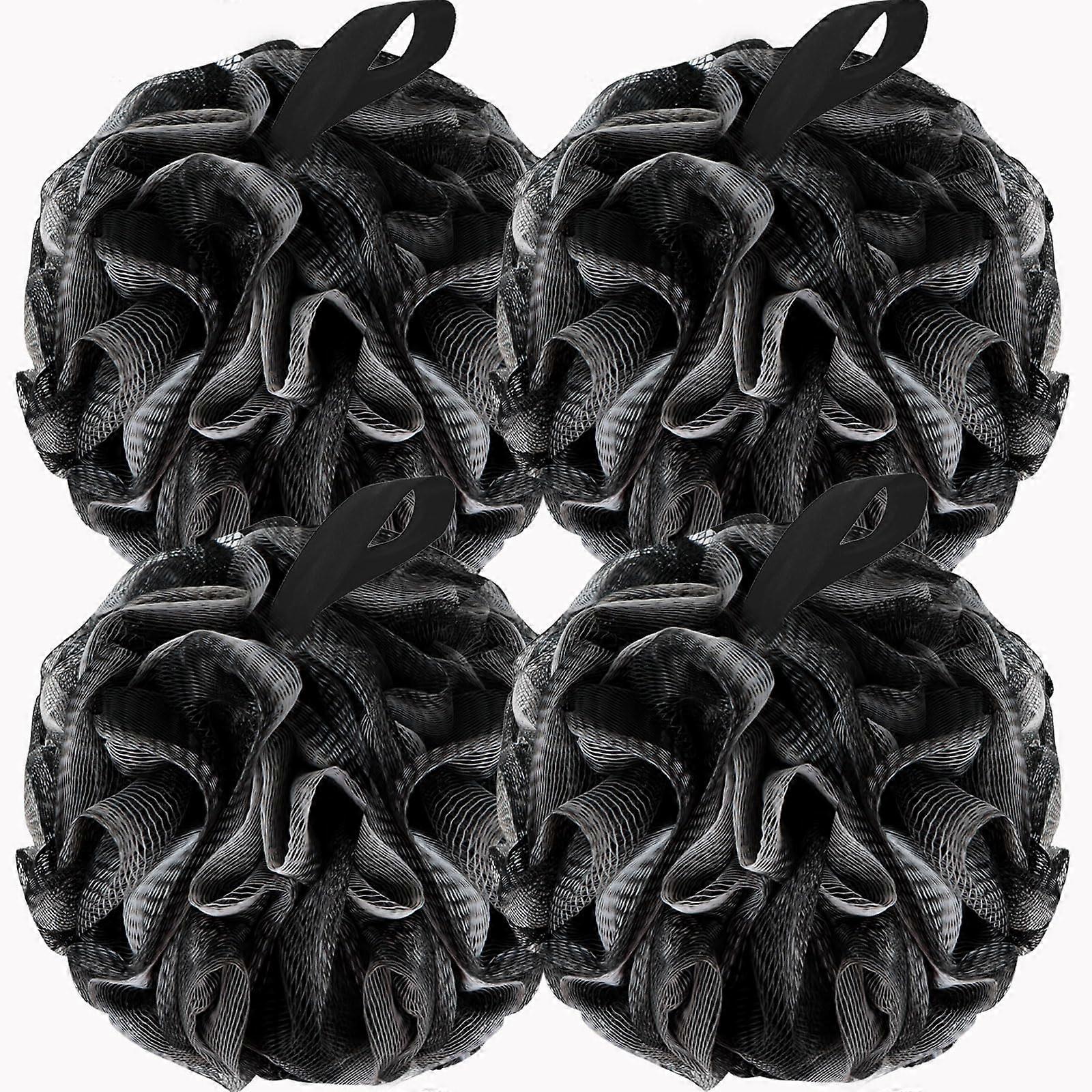 Charcoal Black Bath Loofah and Shower Sponge Set, Soft Mesh Exfoliating Pouf for Men and Women, 4 Pack