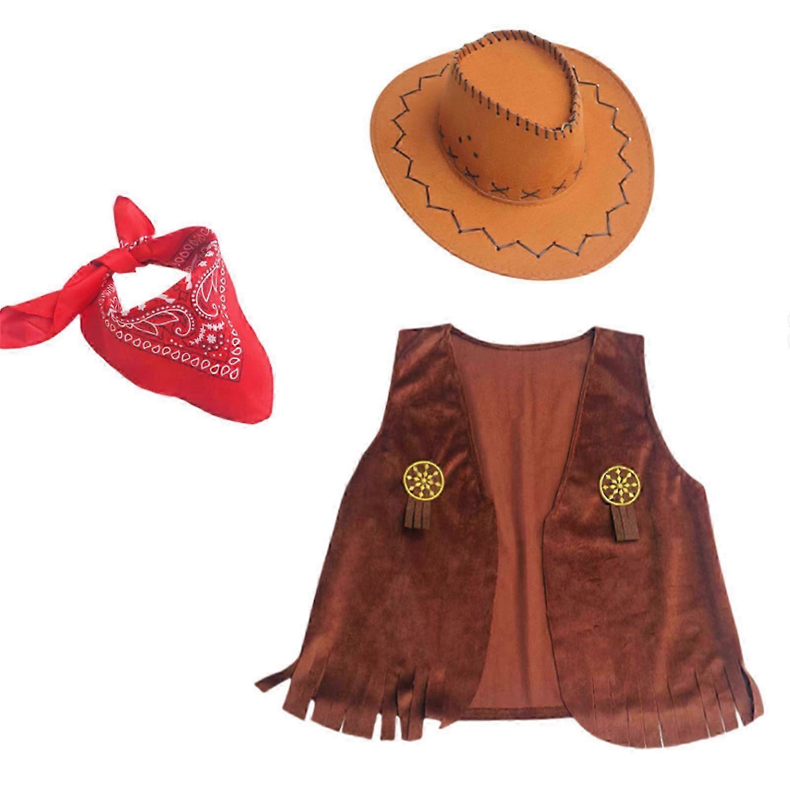 3Pcs Cowboy Costume Accessories for Boys and Girls Kids Cowboy Hat Vest Bandanna Set Western Cowboy