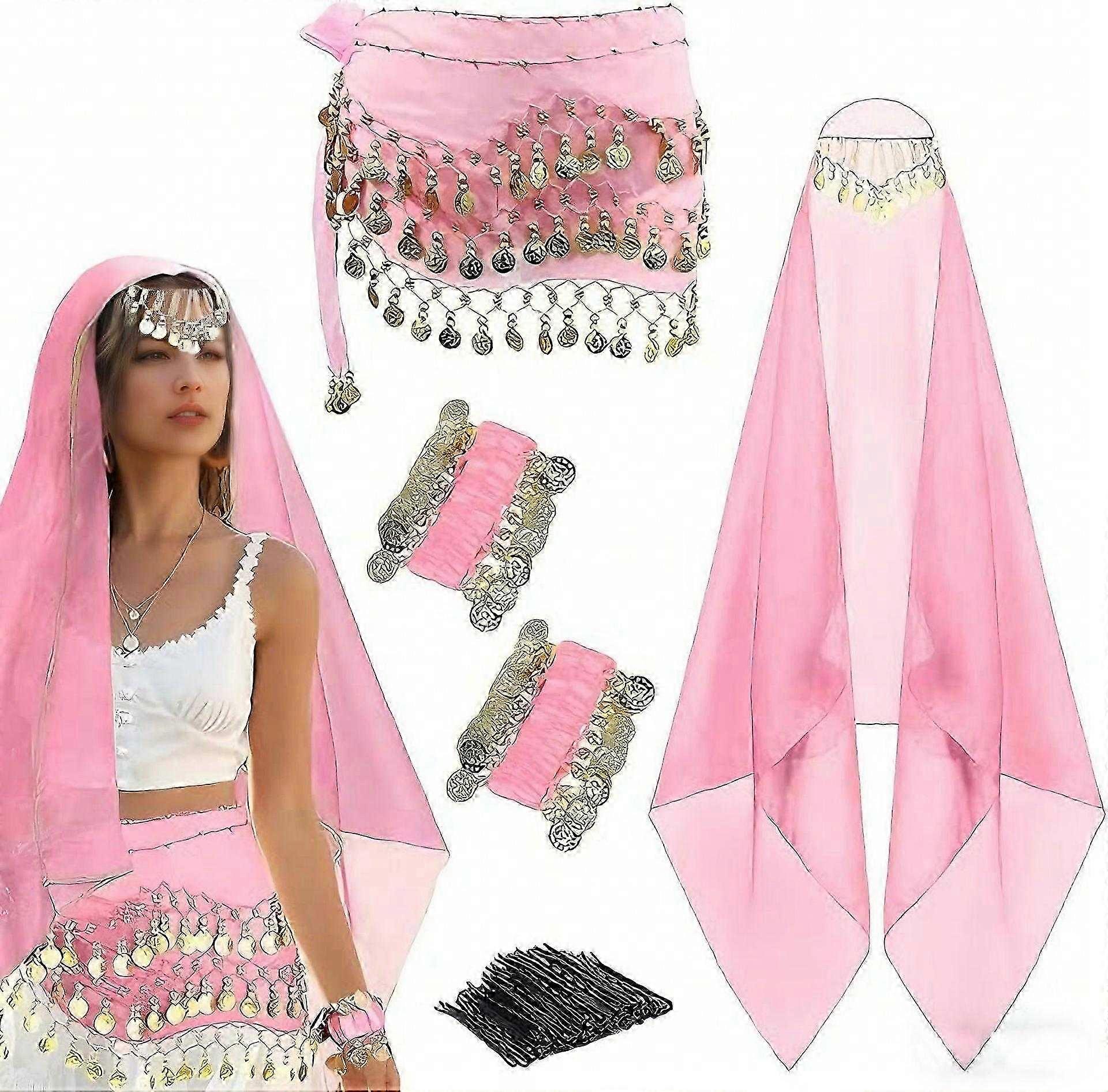 Belly Dance Costumes Halloween Indias Dance Outfits Coins Belly Dance Hip Scarf Chiffon Head Scarf,2