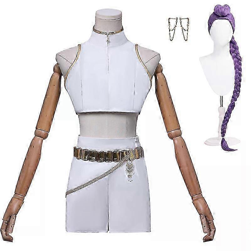 Kpop Cosplay Costume Wig Women Girls White Leather Suit Halloween Carnival Party Comic-con Role Play