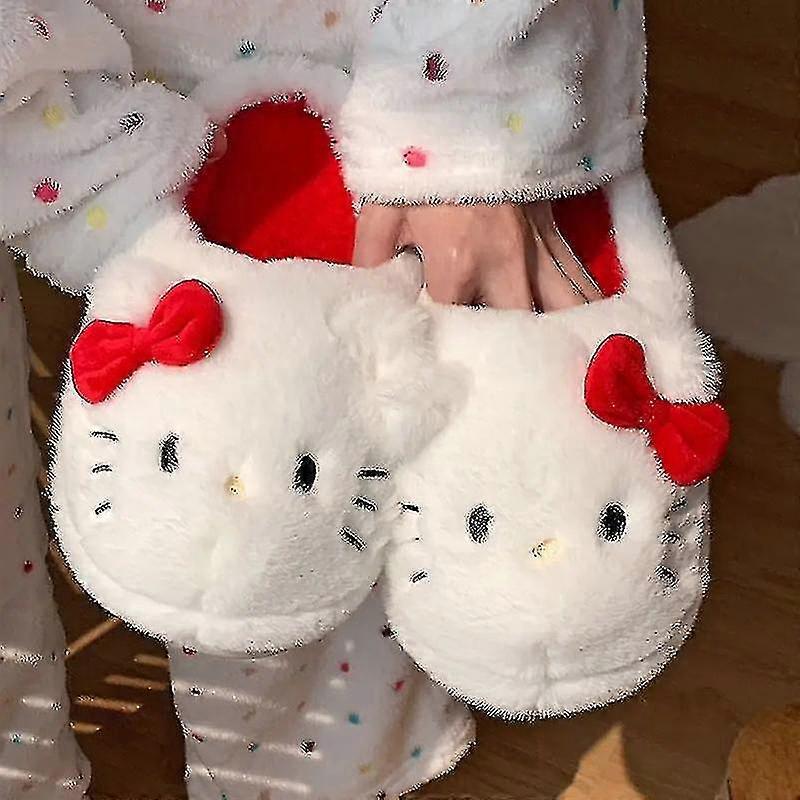 Hello Kitty Sanrio Plush Slippers Kawaii Cute Student Autumn Winter Bedroom Soft Padded Plush Shoes