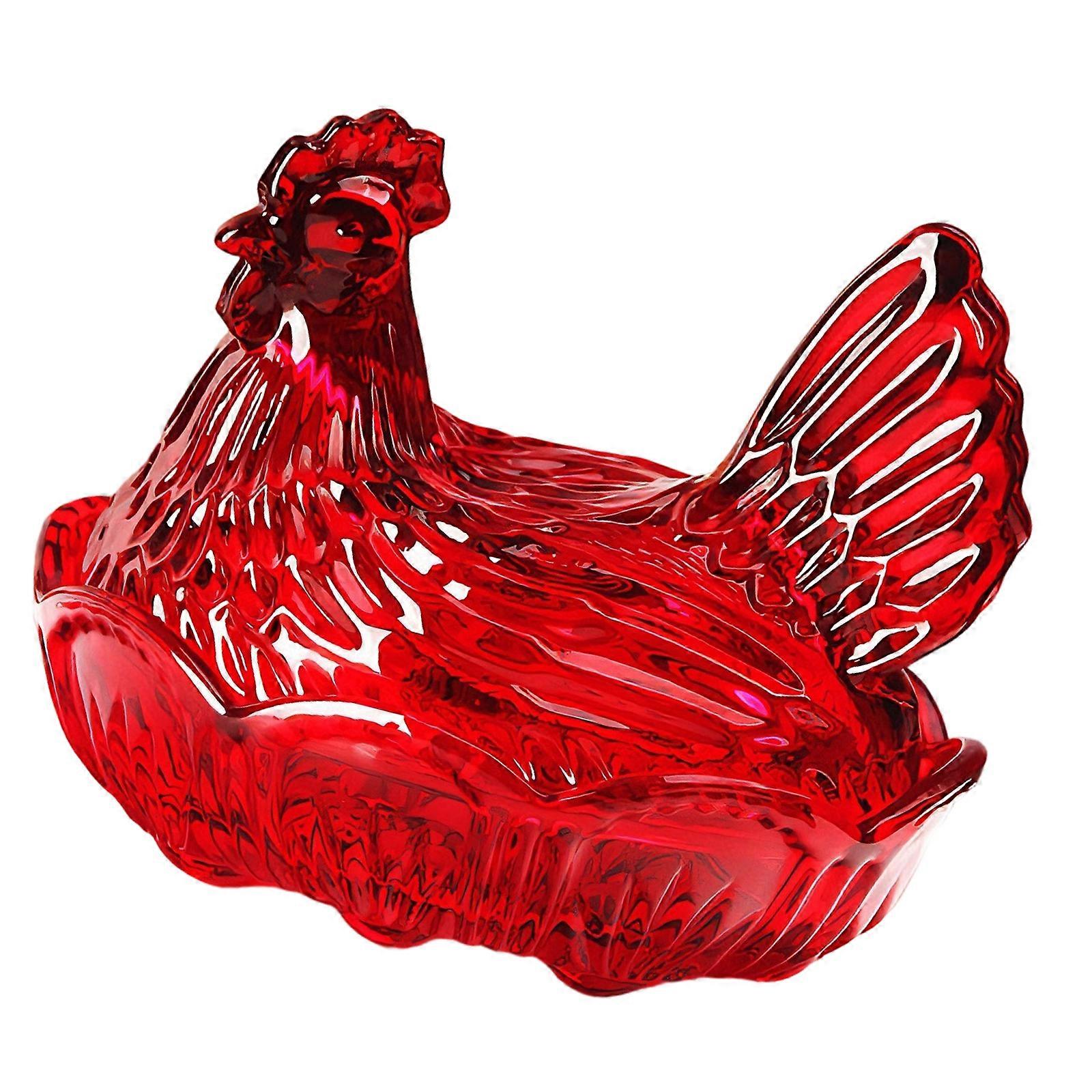 Crystal Glass Chicken Shape Candy Dish,Retro Candy Bowl with Lid,Dessert Plate Snacks Bowl Ornament for Home Decors Red