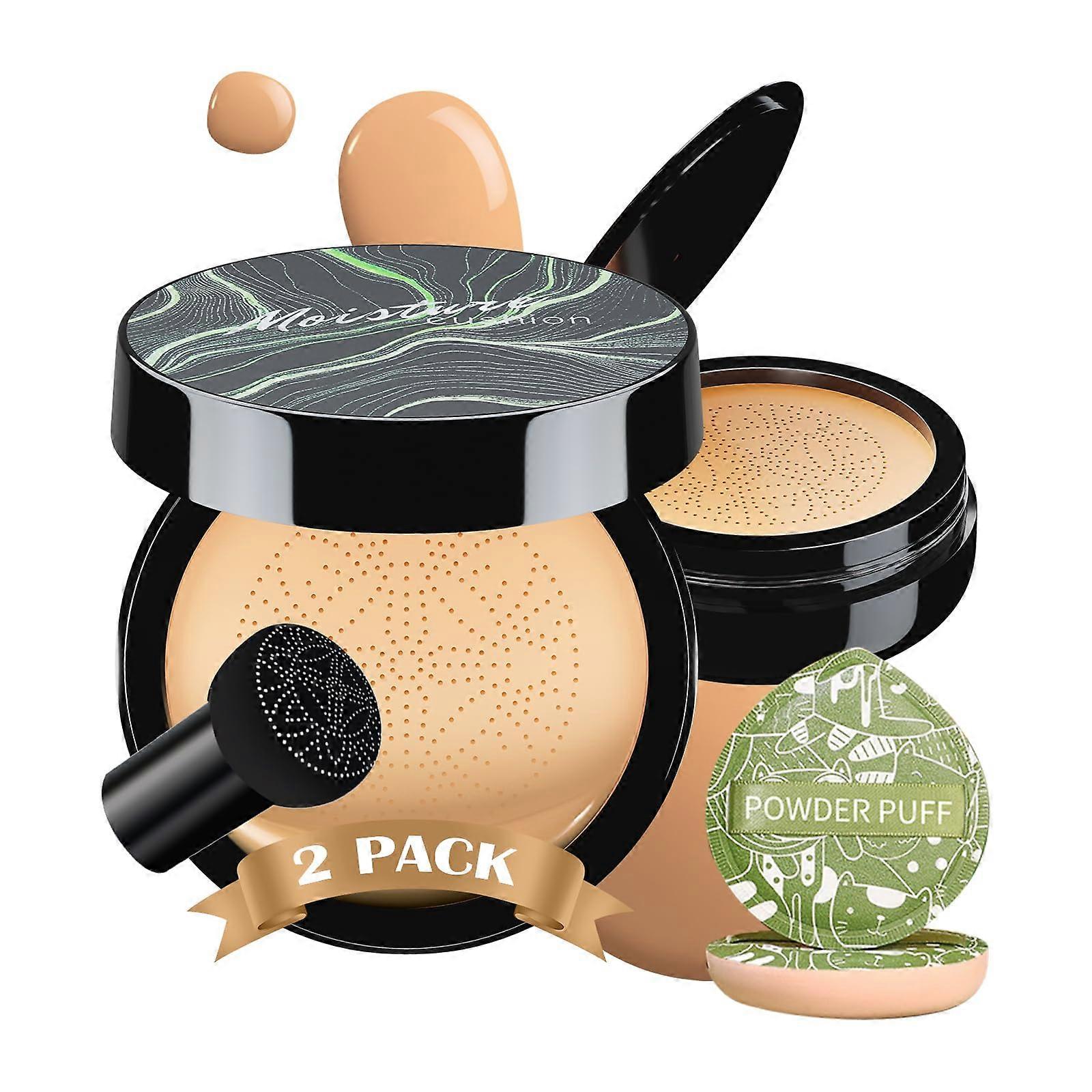 2 PCS Cushion Foundation and BB Cream, Breathable Full Coverage, Hydrating Oil Control for Mature Skin (Buff Beige)