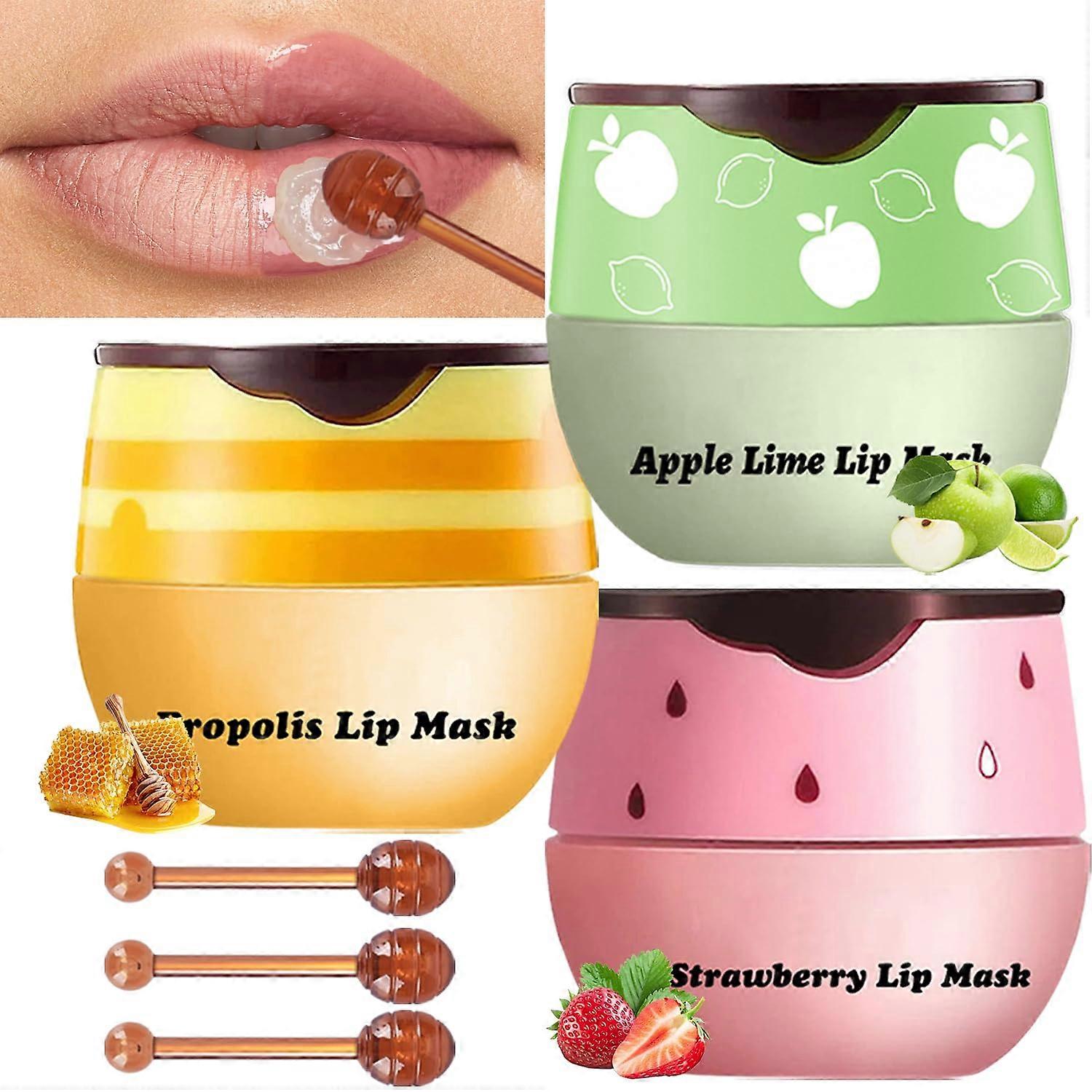 Lip Sleeping Mask Set with Honey Propolis, Overnight Hydration and for Dry Chapped Lips