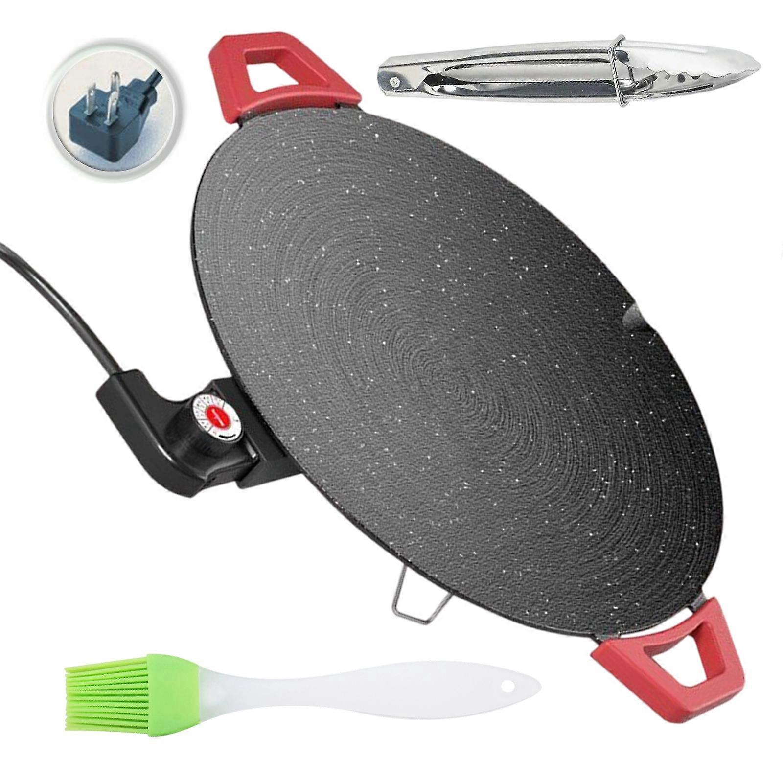 Electric Grill Pan Round BBQ Griddle Concave Design Nonstick Coating Temperature Knob Adjustment Electric Grill Plate Multicolor