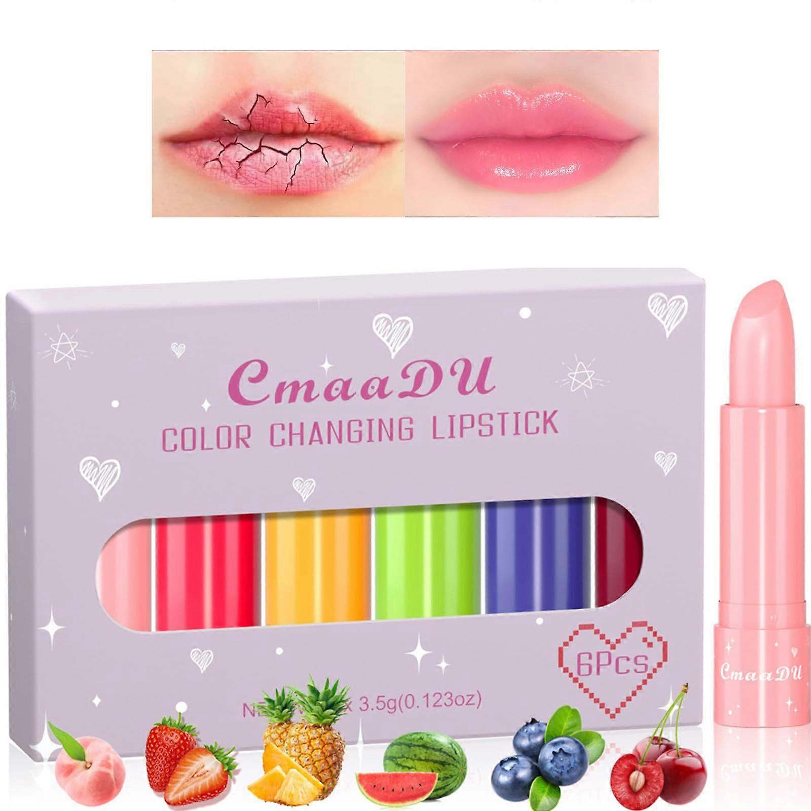 Color Changing Lip Balm Set with pH Reactive Lipstick, 6 Fruity Flavors, Long Lasting Moisture