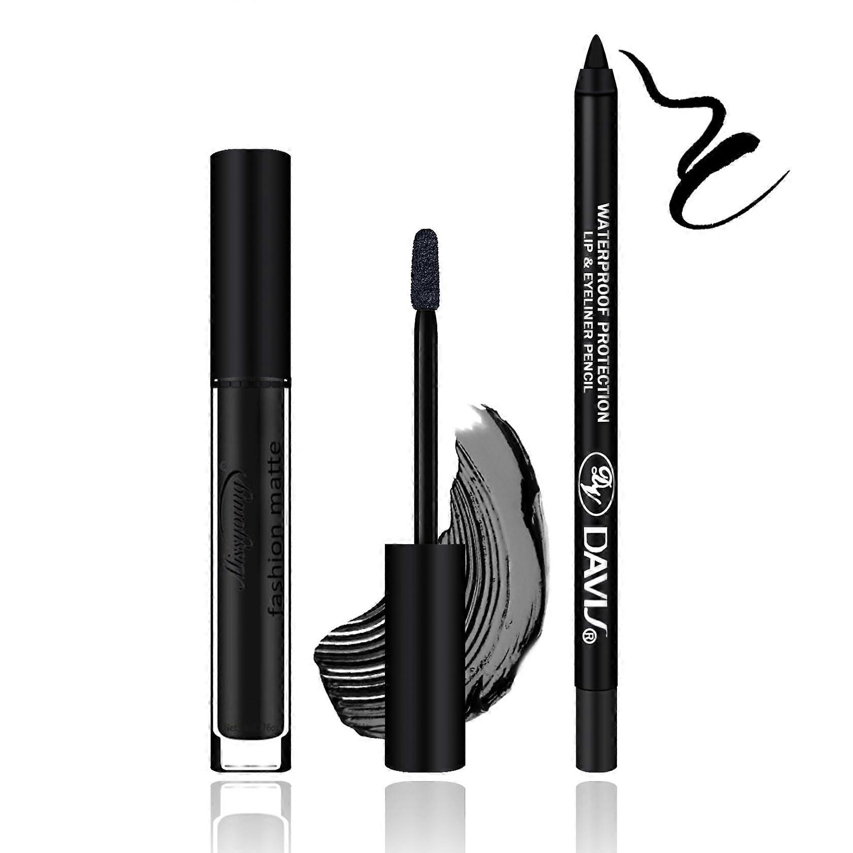 Waterproof Black Matte Liquid Lipstick and Lip Liner Set, Long Lasting Velvet Gloss for Gothic Makeup