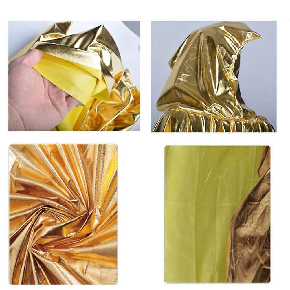 Unisex Gold Cloak Hooded Cloak for Halloween Full Length Role Cape