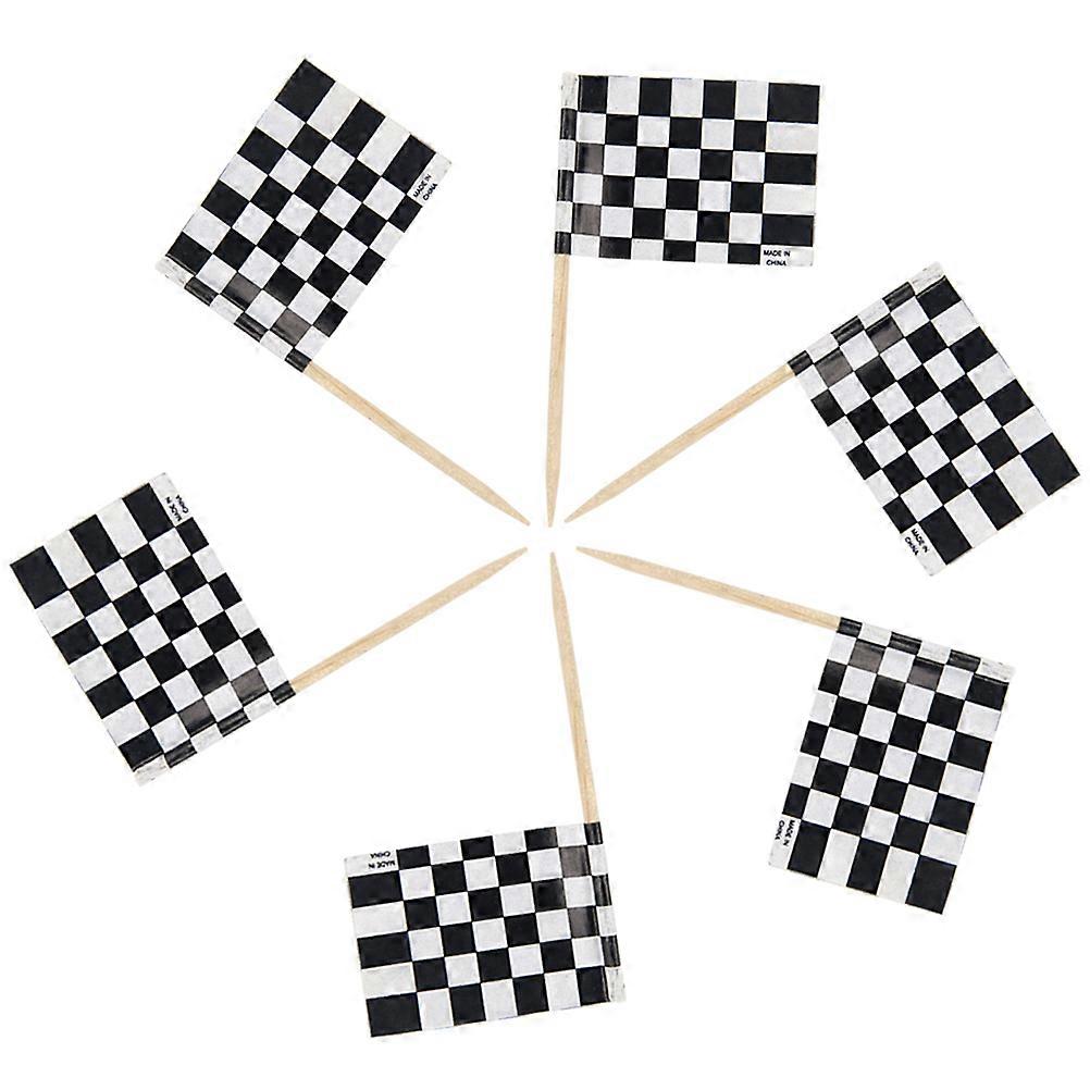 Checkered Flag Stick Toppers for Decorating Birthday Cake 48Pcs Black