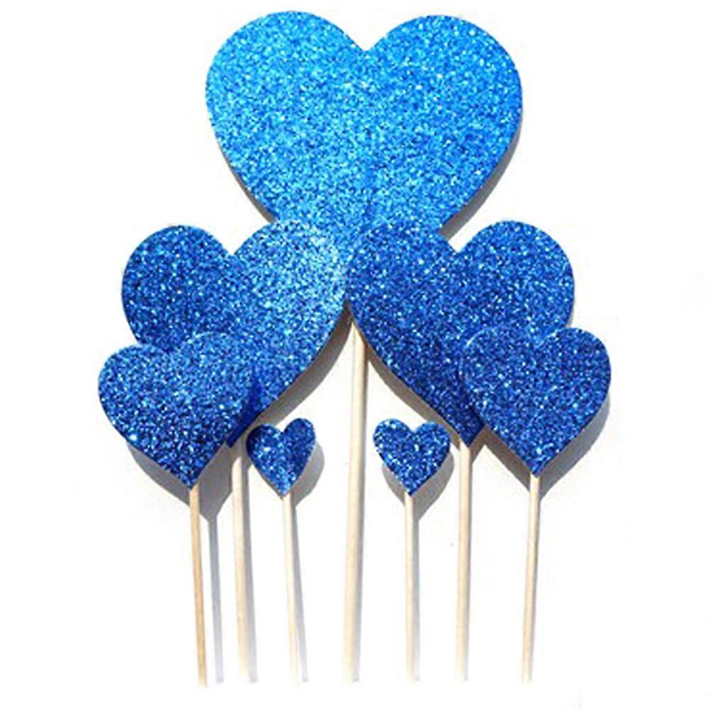 DIY Wedding Cake Insert Cards 7Pcs Glittery Heart Shape Insert Cards with Toothpick for Birthday Party Appetizer Picks Blue