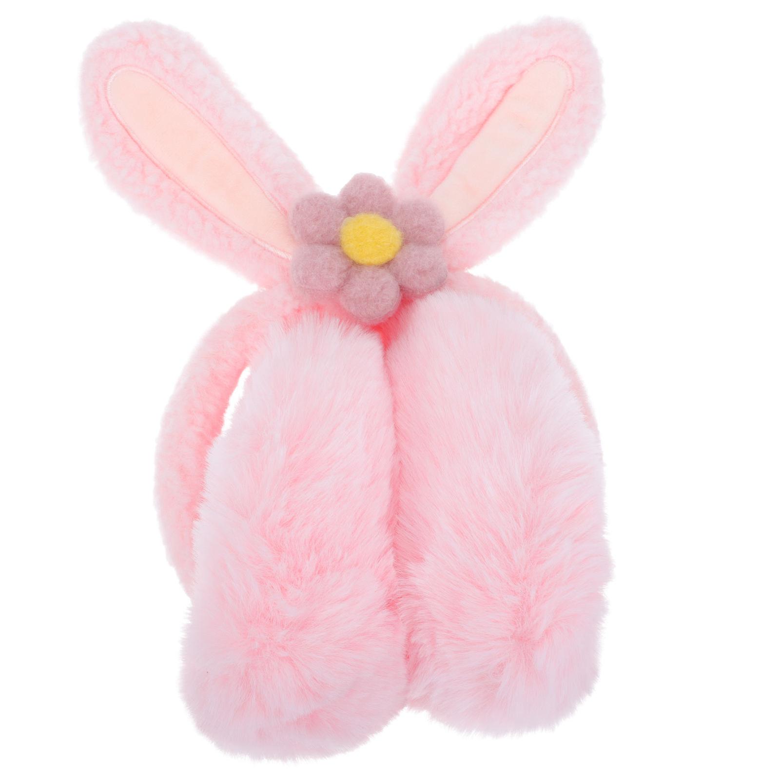 Rabbit Ear Earmuff Plush Winter Ear Warmer for Outdoor 1Pcs Pink Plush Muff